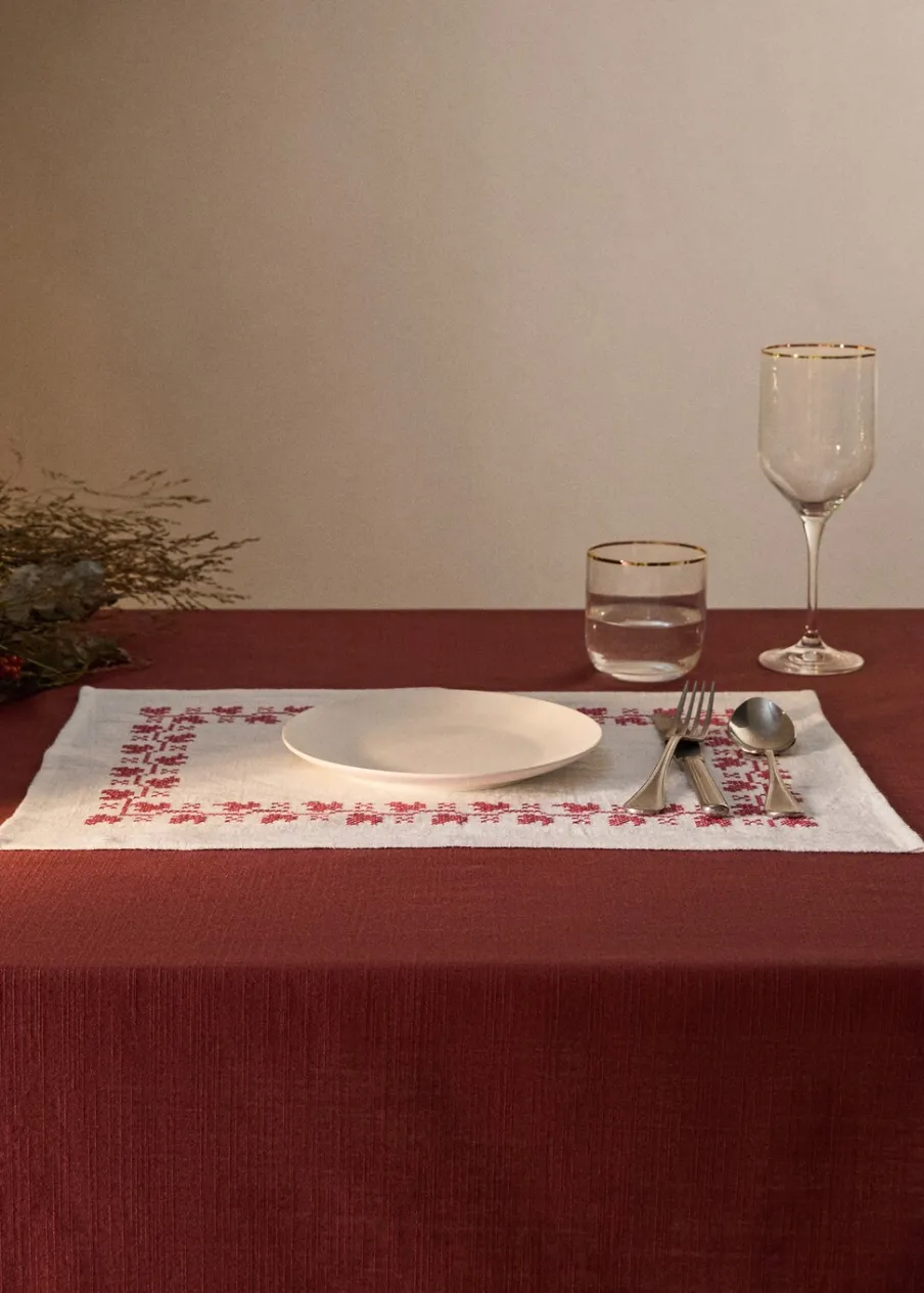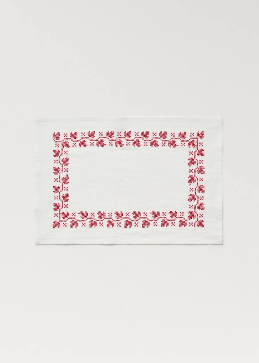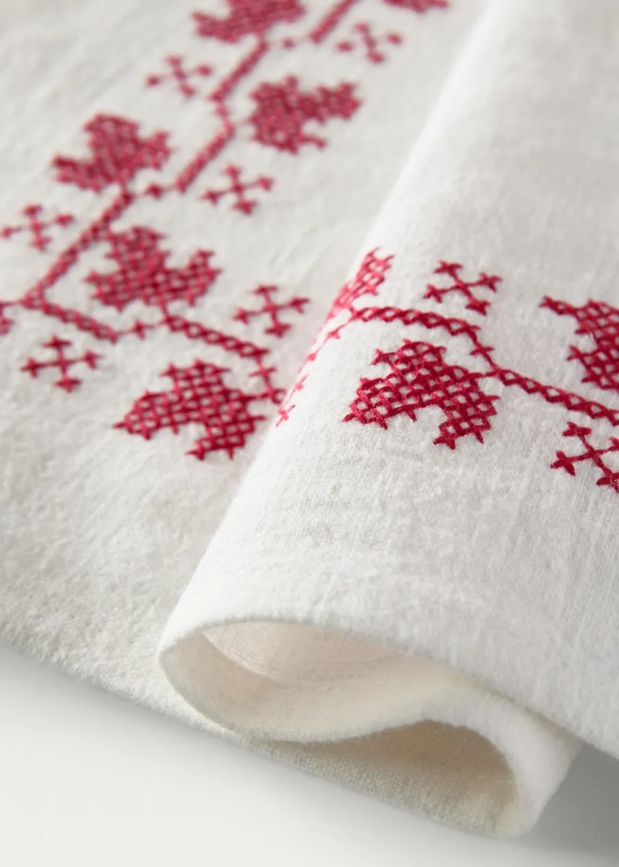 Wymiary: 35 x 50 cm. Haftowany detal. Sprzedaż na sztuki. Kreuje przytulny i ciepły nastrój z oryginalnym akcentem. Pasuje do innych artykułów z kolekcji. Można prać w pralce w 30º. Kolekcja Bożonarodzeniowa. Tkanina z ramii i bawełny. Prasować w maks. 110°C. Nie używać wybielacza. Nie suszyć w suszarce bębnowej.