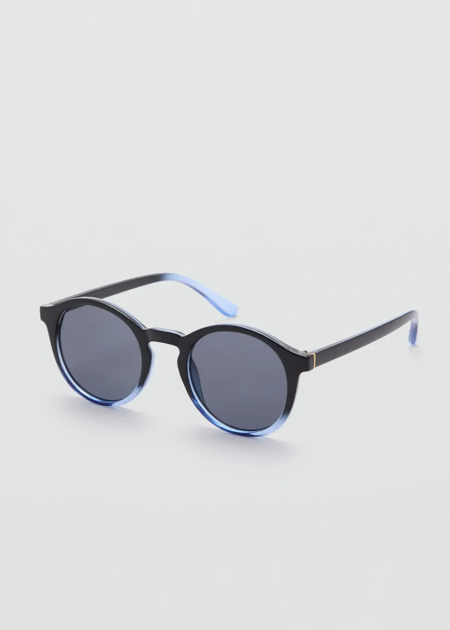 Okrągły kształt. Oprawki z tworzywa. Całkowity wskaźnik ochronny z filtrem UV kategorii 3. W zestawie składany pokrowiec i torba z tkaniny. Oprawki z tworzywa.