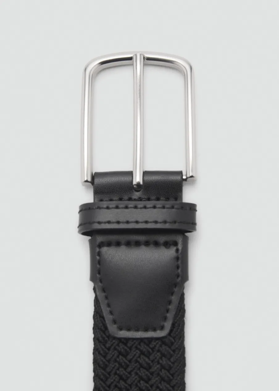 Skórzane wykończenia. Metalowa klamra. Elastyczny materiał zapewniający dopasowanie i wygodę.