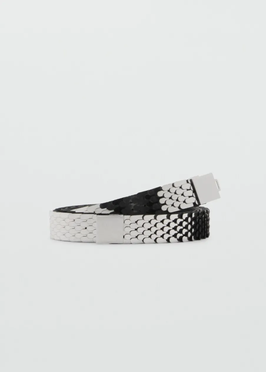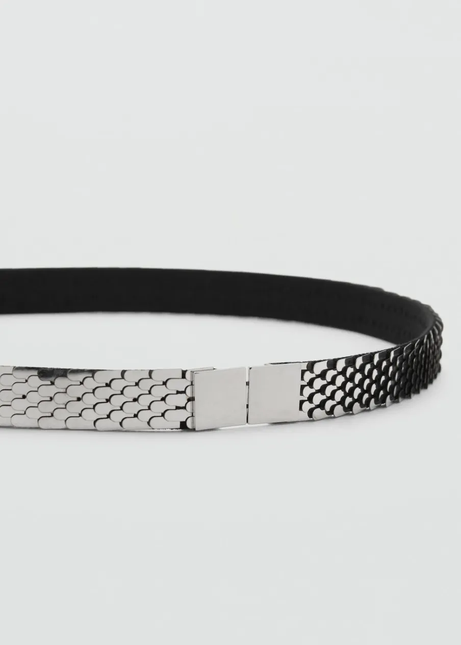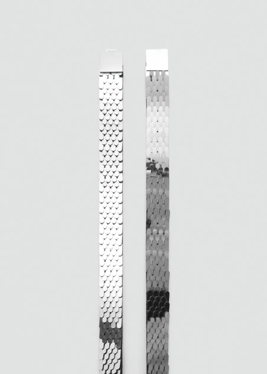 OpisModel z metalu. Zapięcie na metalowy zacisk. Elementy imitujące łuski. Kolekcja wizytowa.