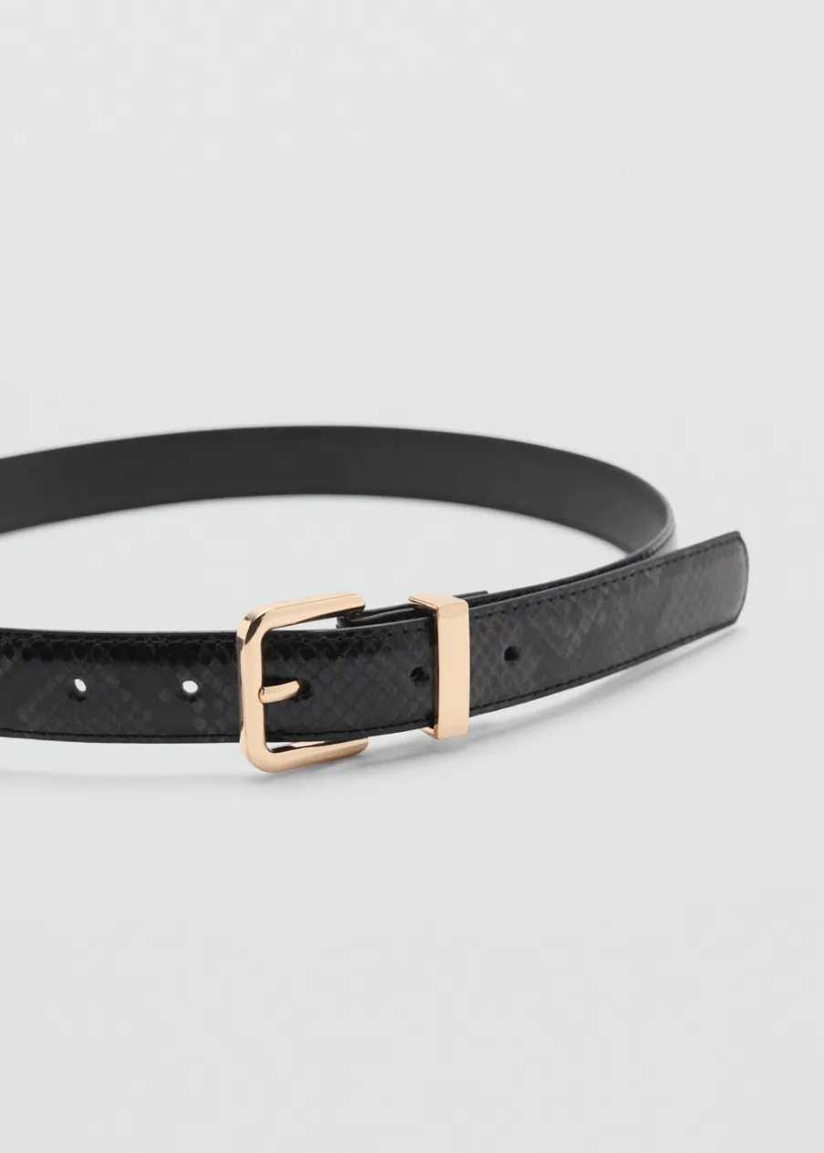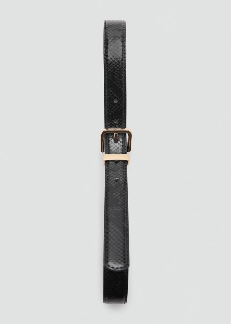 Wzór wężowej skóry. Zapięcie na klamrę. Metalowa klamra.