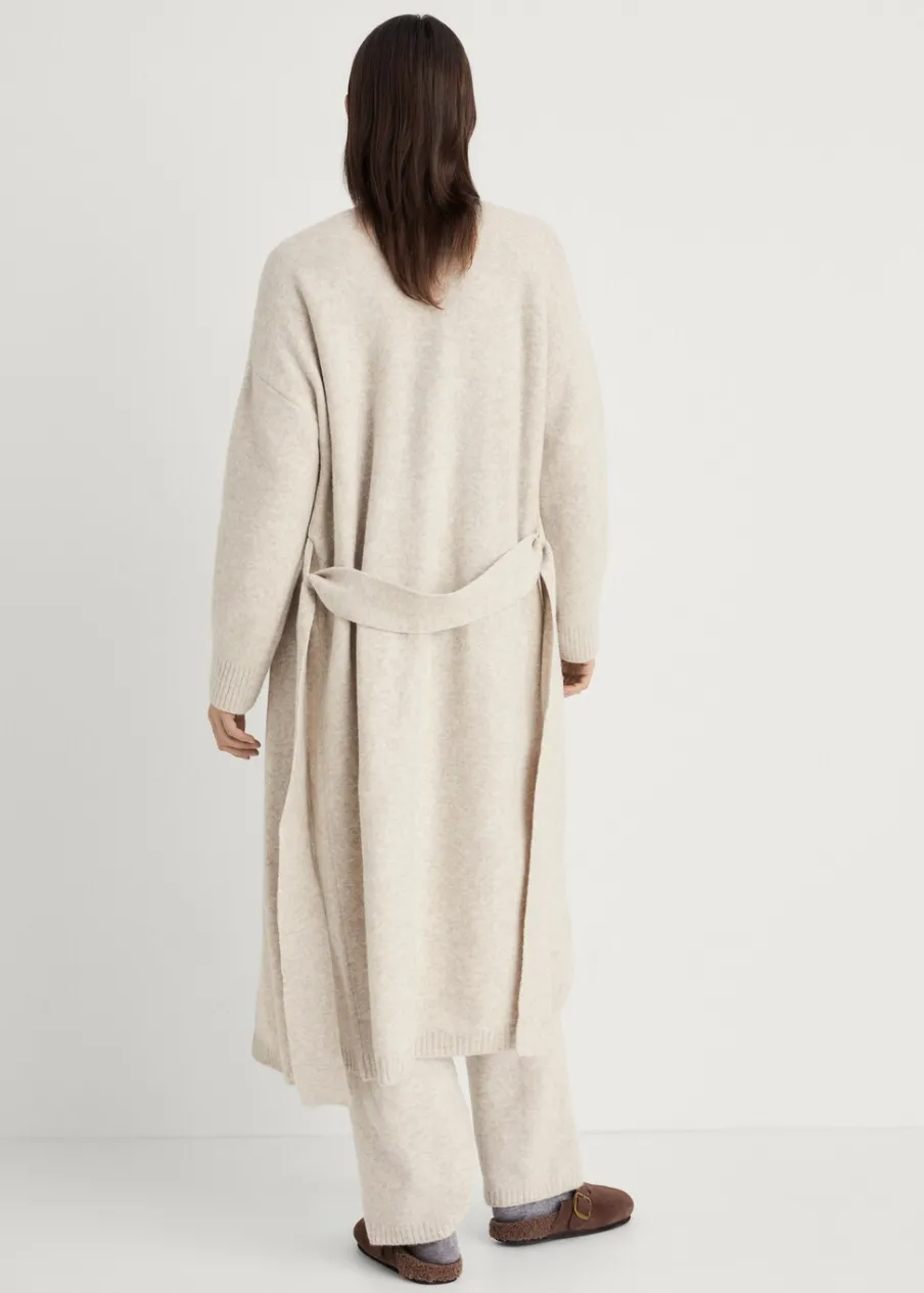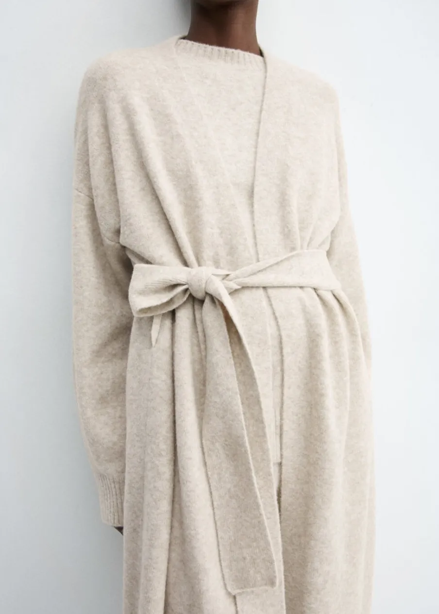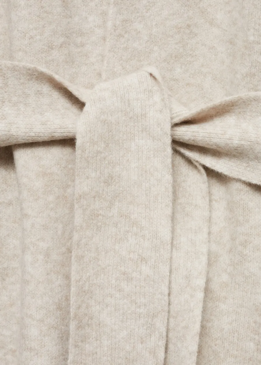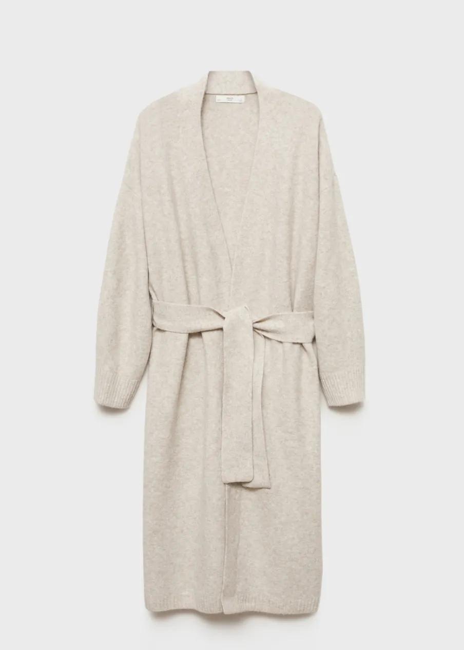 OpisDzianina średniej grubości. Model długi. Zakładany dekolt V. Długi rękaw. Dekoracyjny pasek. Total look.
