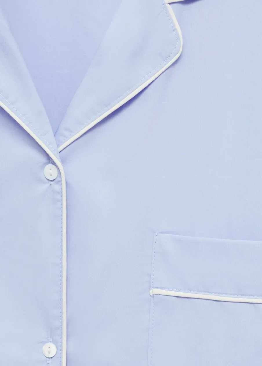 Model prosty. Koszulowy kołnierz. Długi rękaw z guzikami na mankietach. Kieszeń nakładana na piersi. Kontrastowe wykończenia. Total look. Tkanina z 100% bawełny. Zapięcie na guziki z przodu.