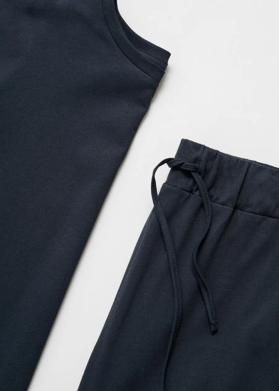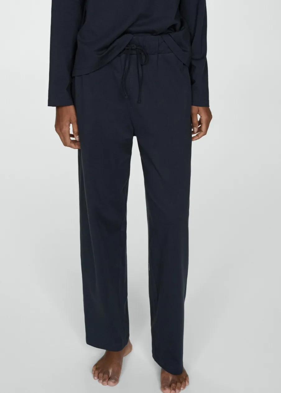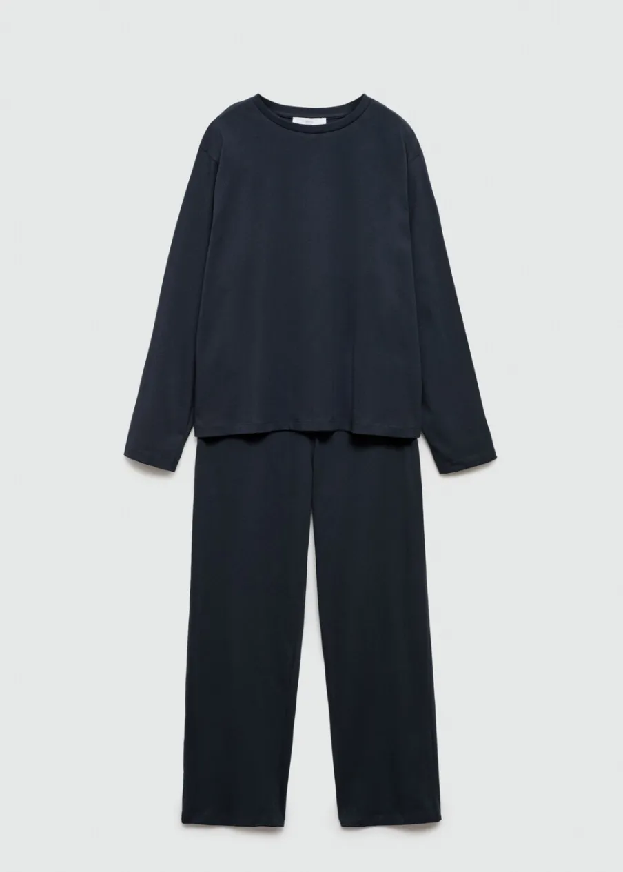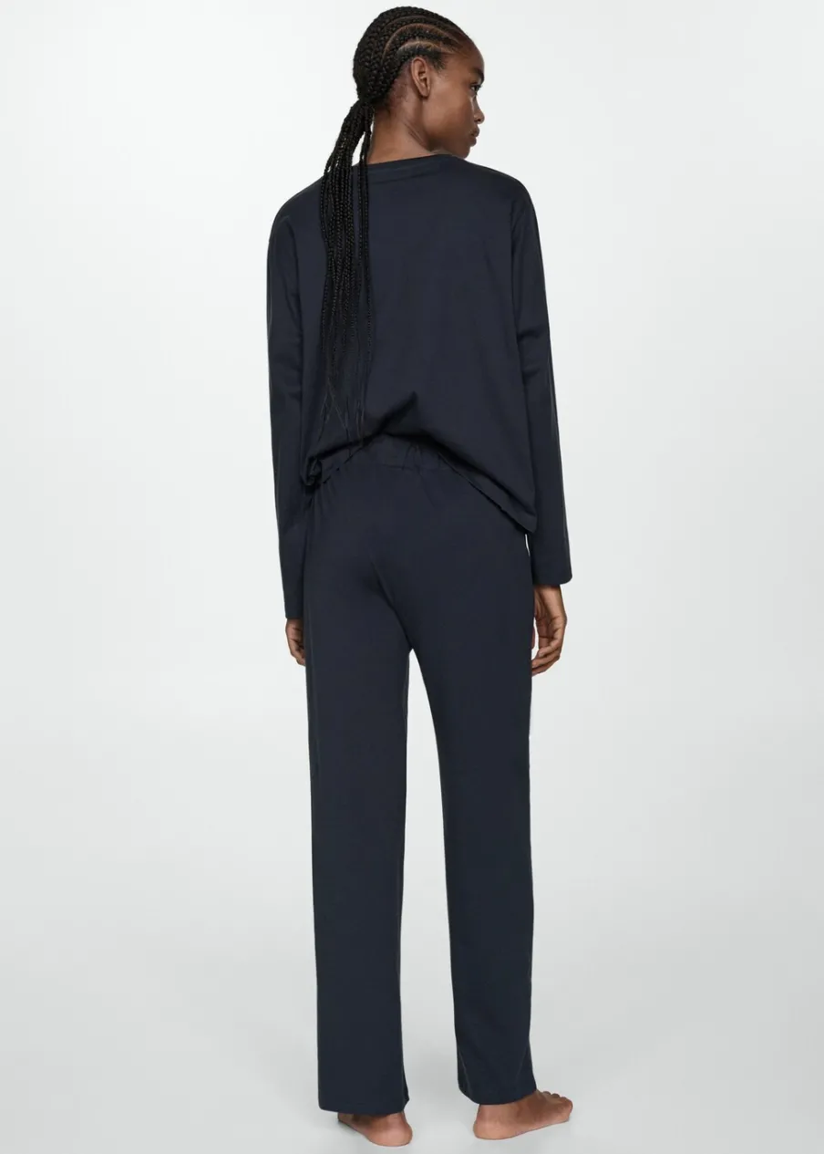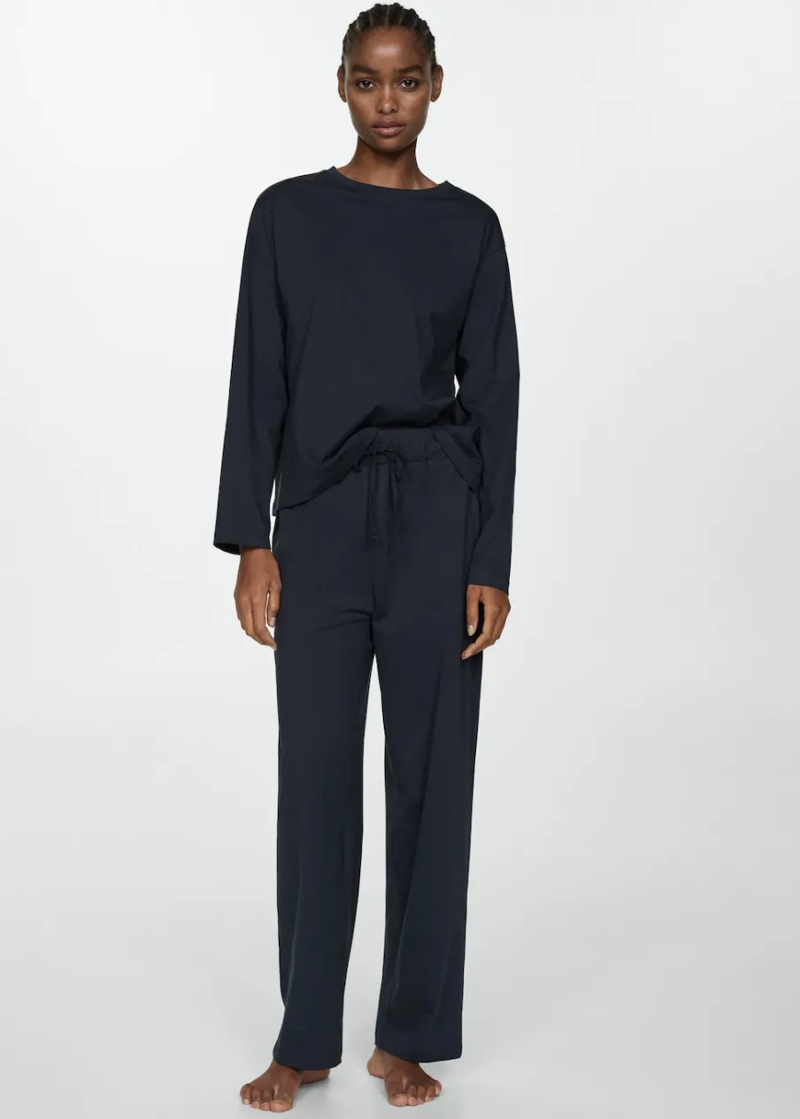 Model długi. Model prosty. Okrągły dekolt. Długi rękaw. Elastyczny pas z wiązanym zapięciem. Tkanina z 100% bawełny.