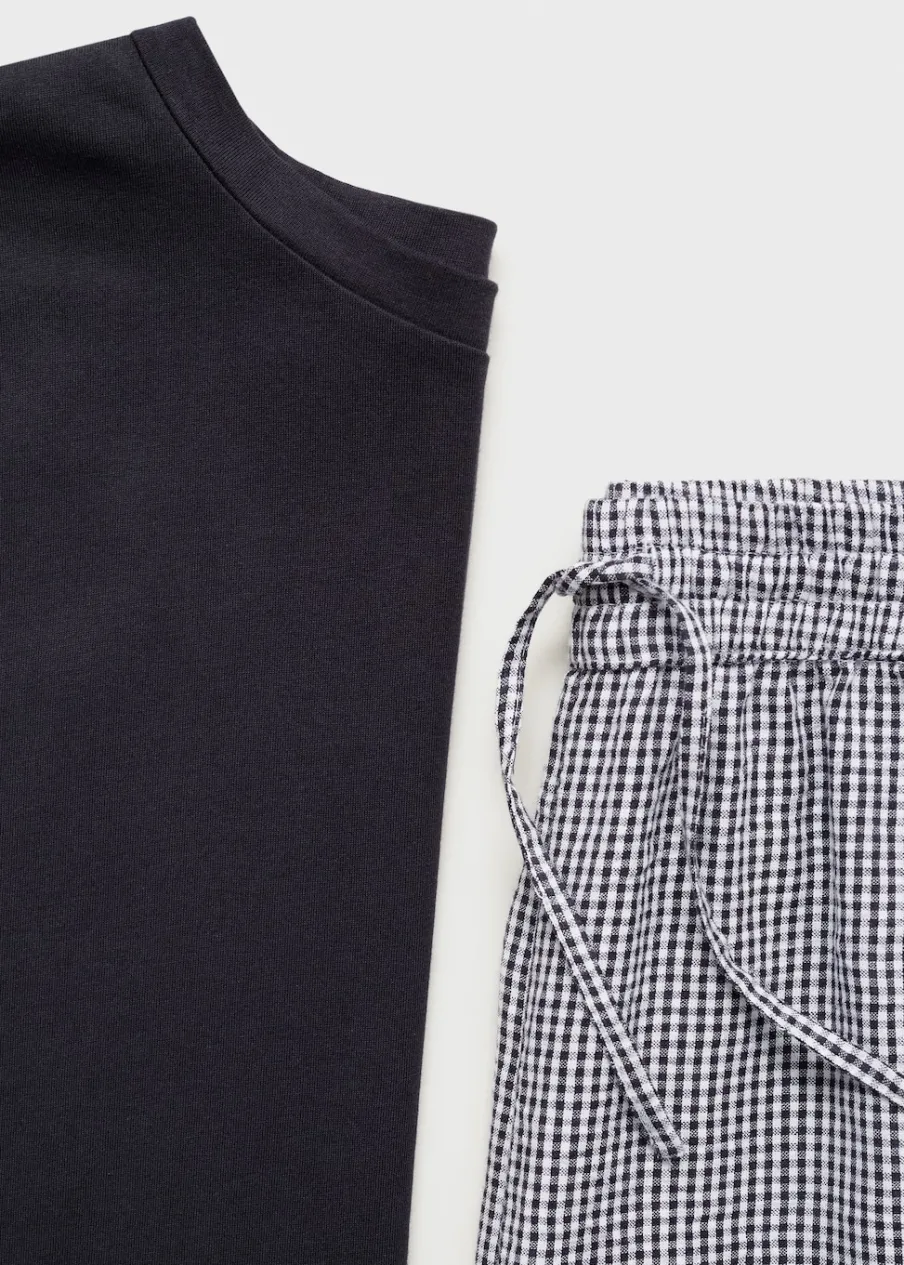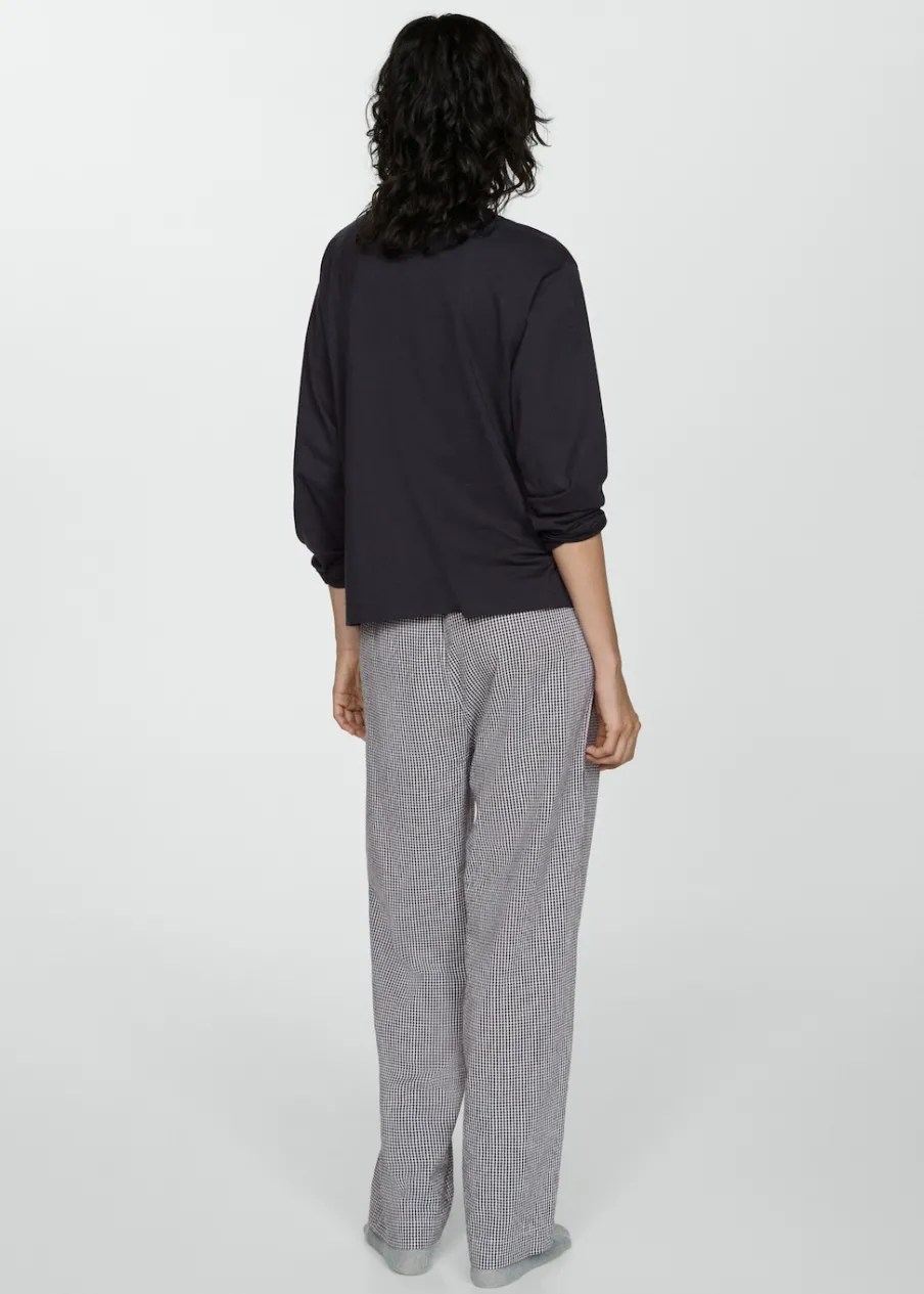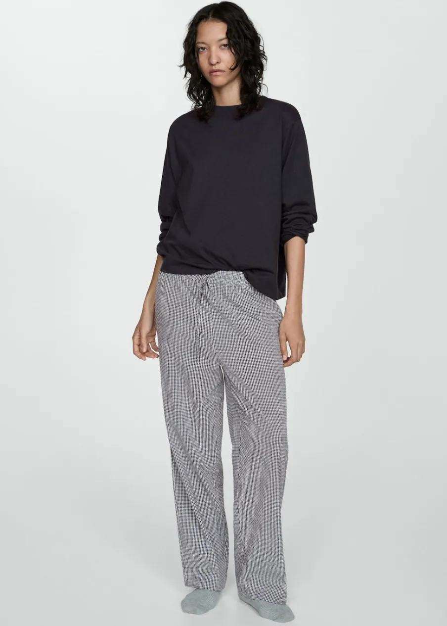 Model długi. Model prosty. Wzór w kratę. Okrągły dekolt. Długi rękaw. Elastyczny pas. Bez zapięcia. Tkanina z 100% bawełny.