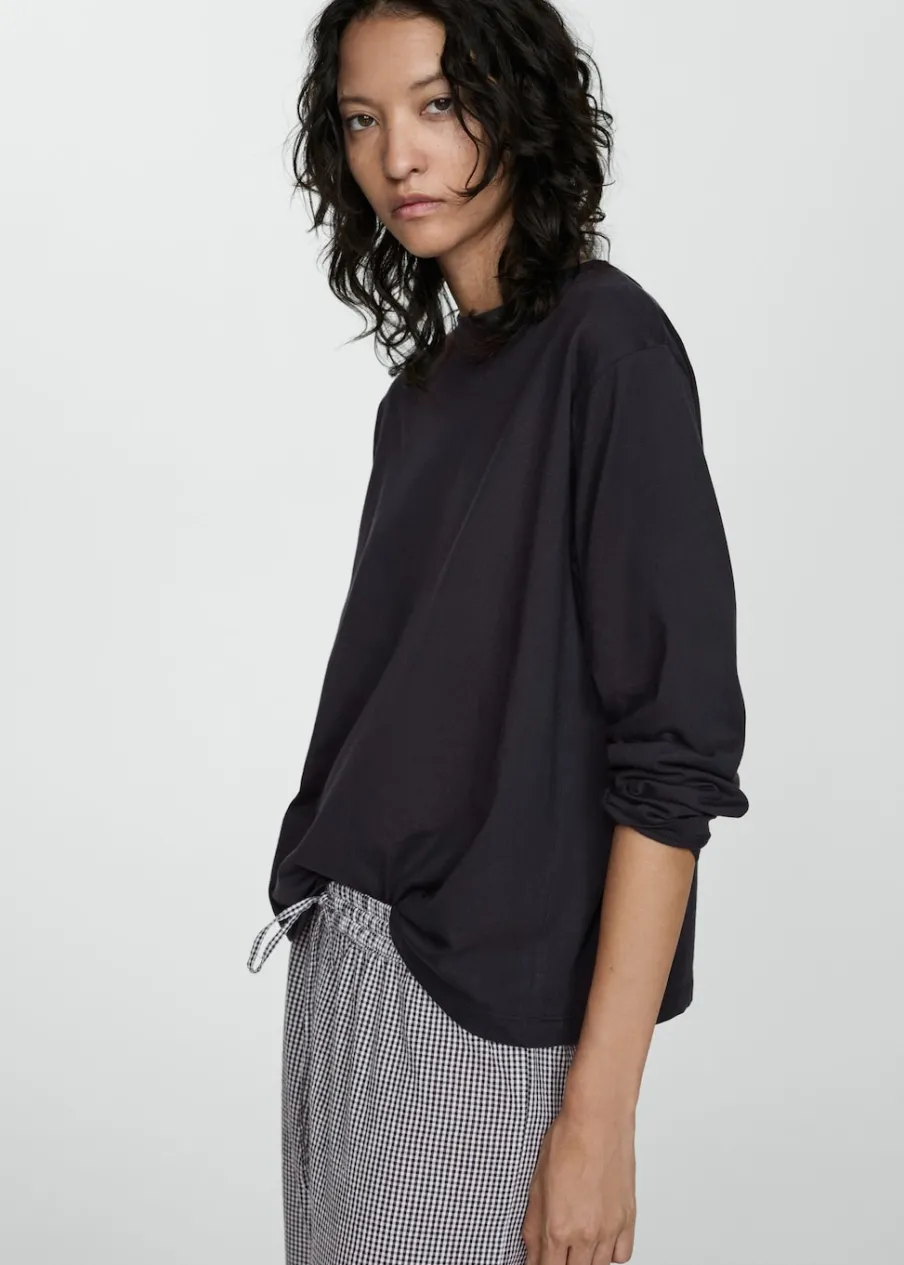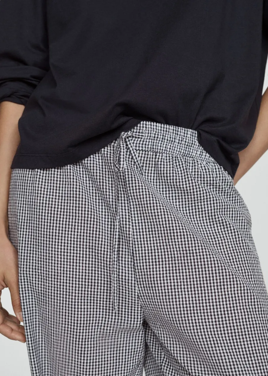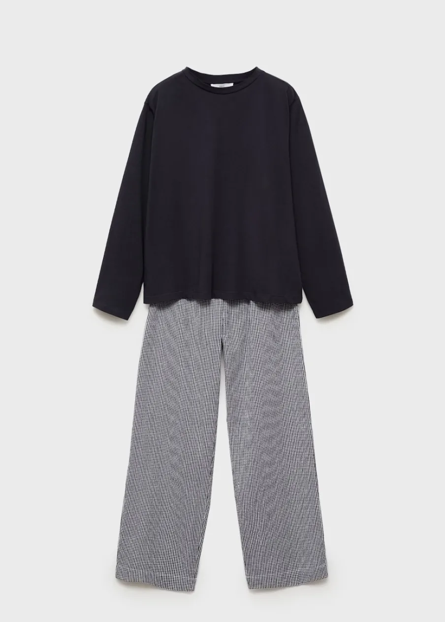 Model długi. Model prosty. Wzór w kratę. Okrągły dekolt. Długi rękaw. Elastyczny pas. Bez zapięcia. Tkanina z 100% bawełny.