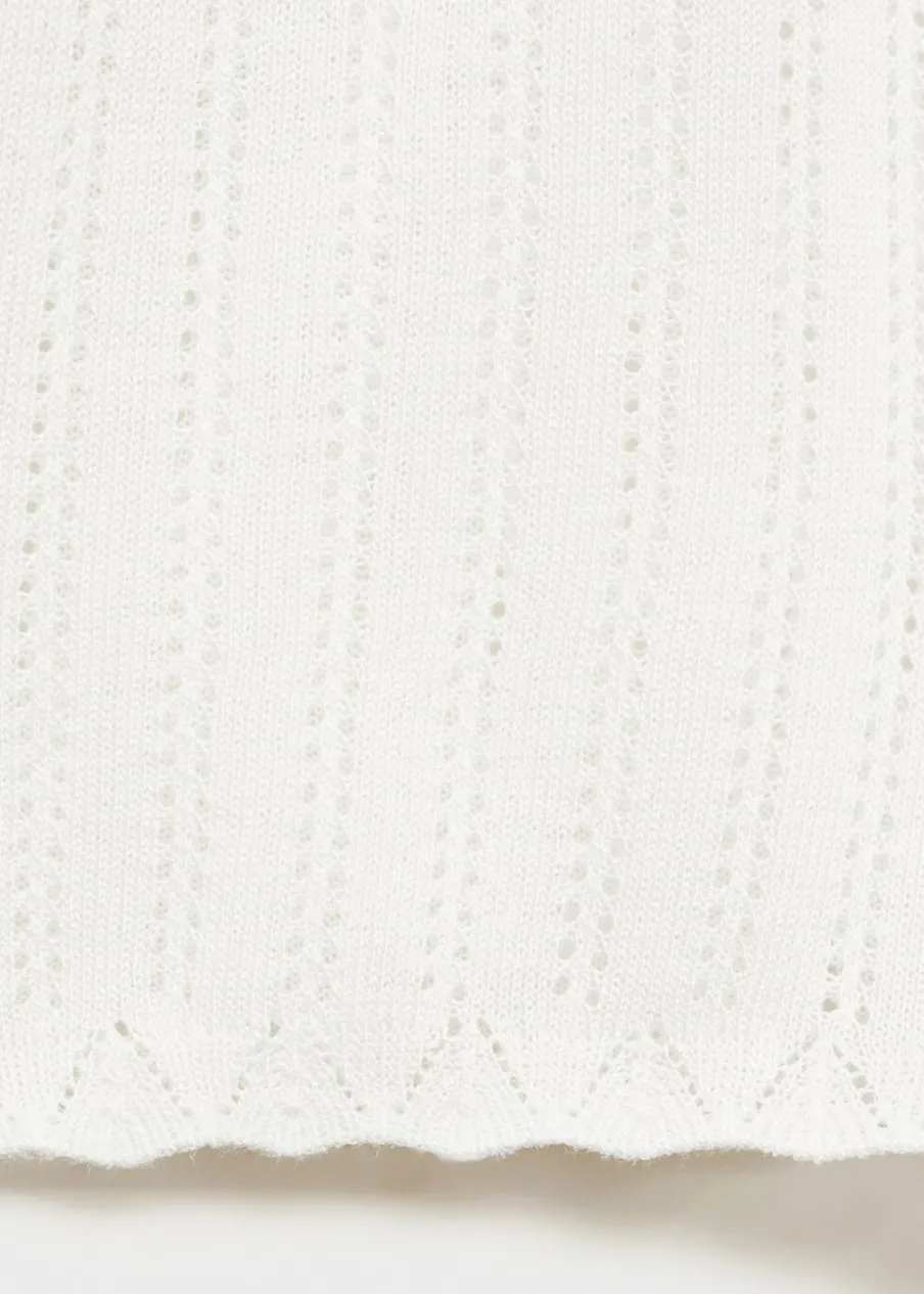 OpisAżurowa dzianina. Miękki i lekki materiał. Talia ściągana troczkami. Połącz z innymi produktami z kolekcji. D…