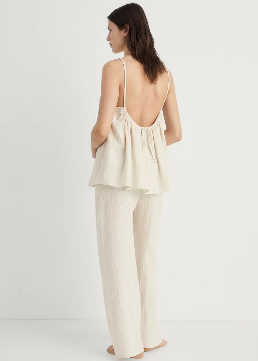 OpisSpodnie od piżamy. Tkanina z 100% bawełny. Regulowany sznurek. Model prosty. Model długi.