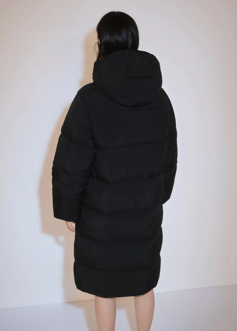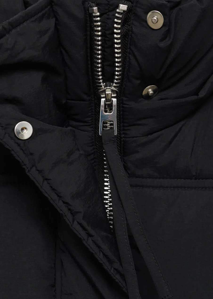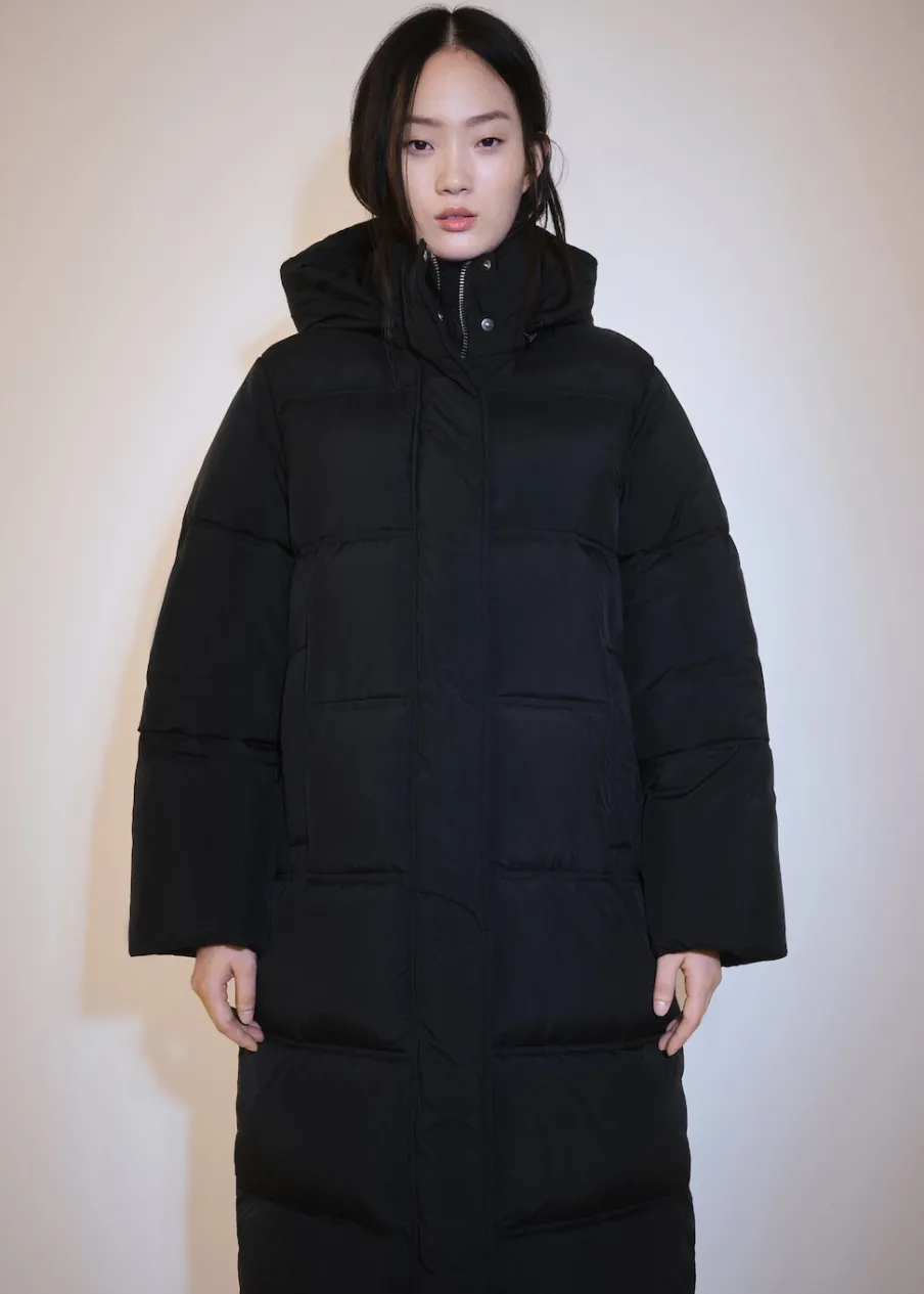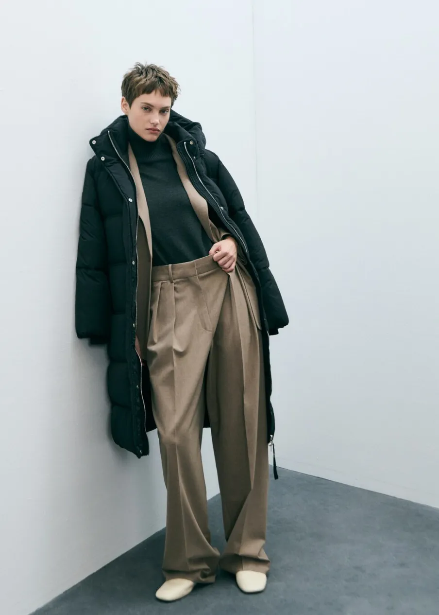 Model pikowany. Model długi. Kaptur. Długi rękaw. Zapięcie z przodu na suwak. Dwie kieszenie boczne. Model prosty. Wyłącznie online. Modelka ma 175 cm wzrostu i nosi rozmiar S/36. Golf. Wewnętrzna podszewka.