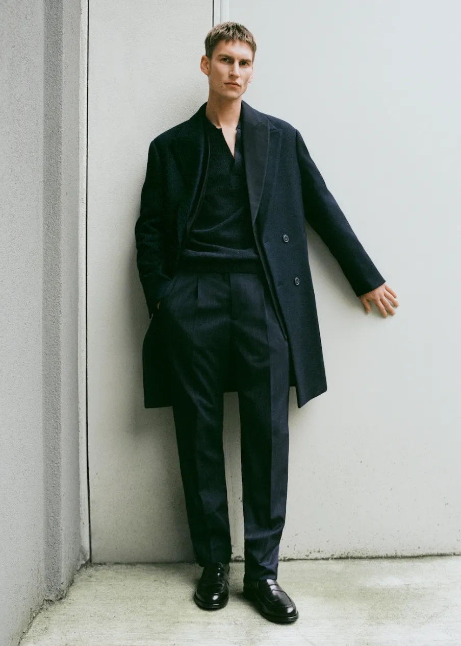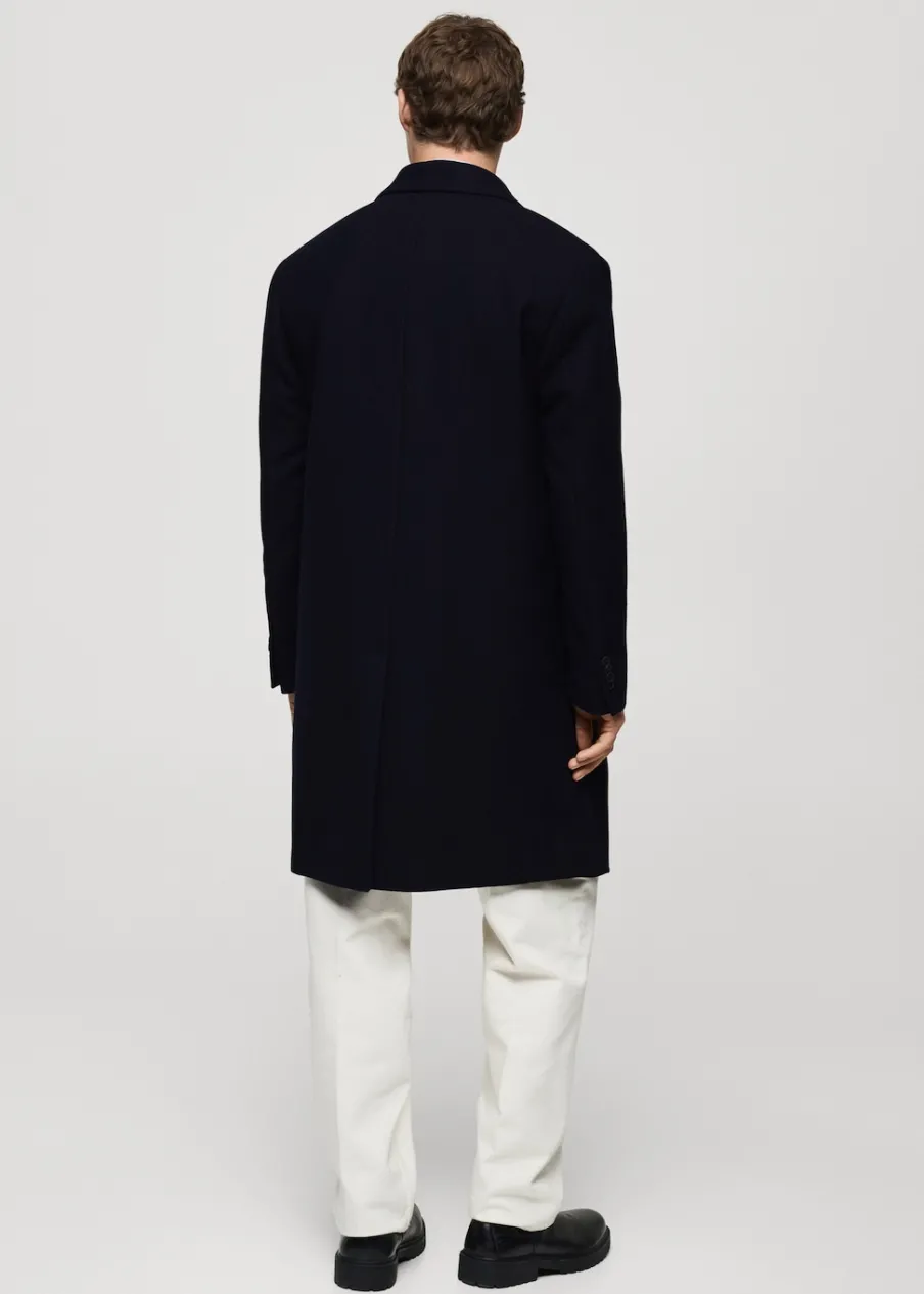 Relaxed fit. Tkanina mieszanka wełny. Model długi. Dwurzędowe zapięcie. Wewnętrzna podszewka. Zapinane mankiety. Klapy otwarte. Model ma 185 cm wzrostu i nosi rozmiar M.