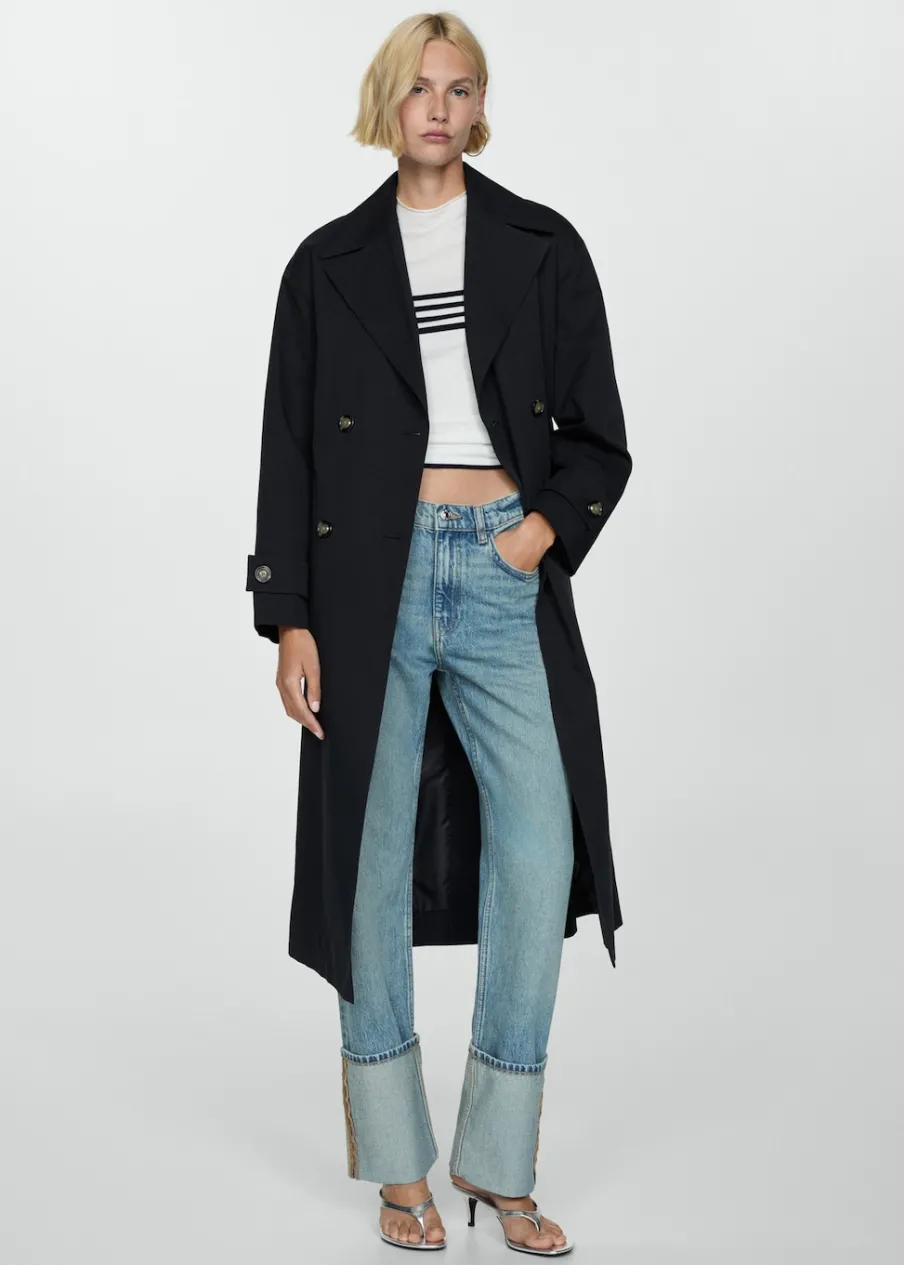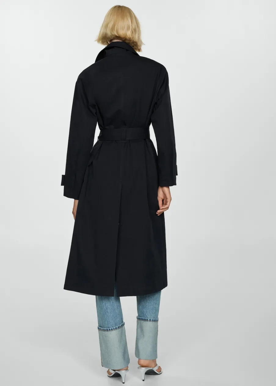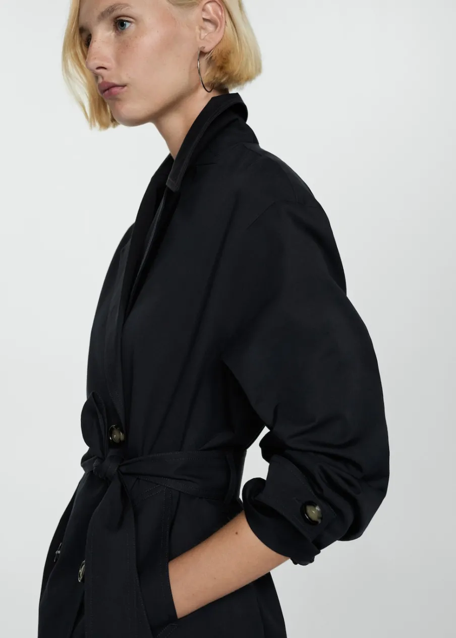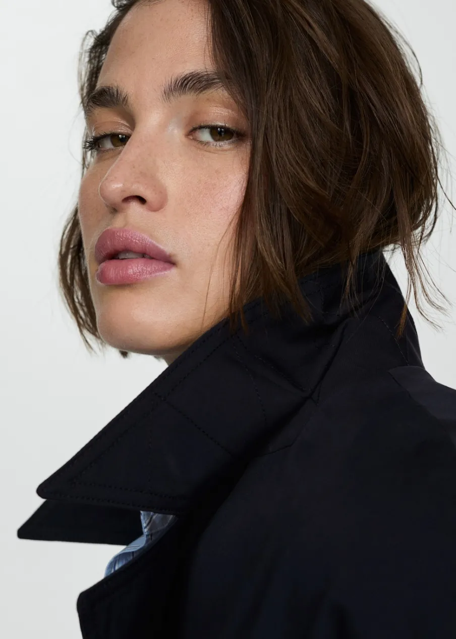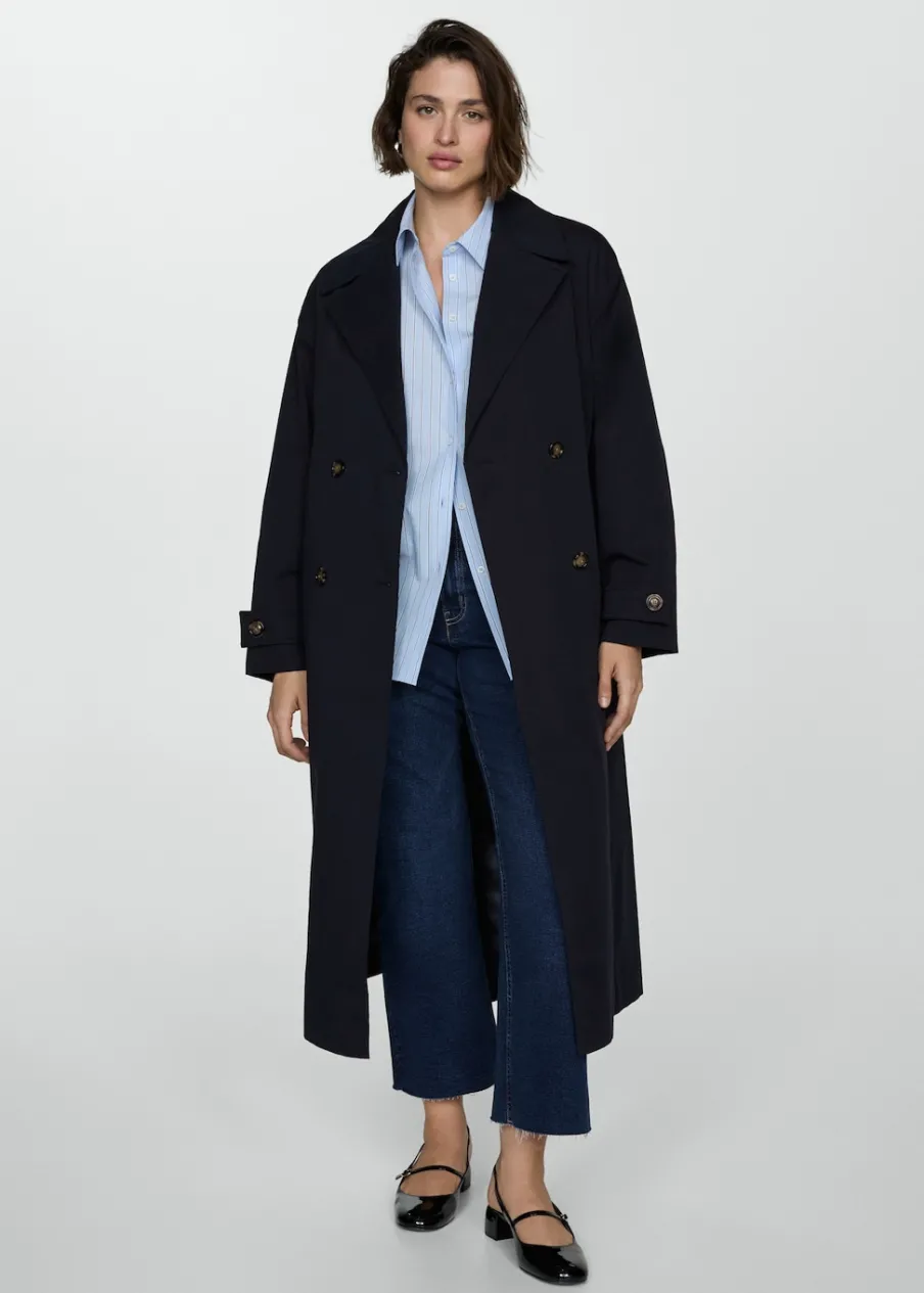 Tkanina mieszanka bawełny. Model prosty. Model długi. Model zakładany. Kołnierz z klapami. Długi rękaw z guzikami na mankietach. Szlufki. Odpinany pasek. Kieszenie boczne. Zapięcie z przodu na guziki. Guziki z imitacji masy perłowej. Wewnętrzna podszewka. Dostępne w Plus Size. Stylizacje biurowe. Water Repellent: trwałe wykończenie tego modelu chroni przed lekkim deszczem, odpycha cząsteczki wody i krople deszczu.