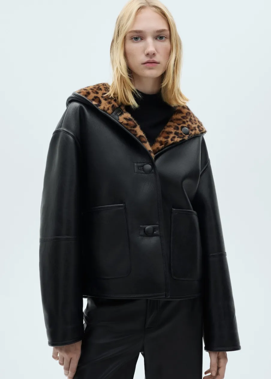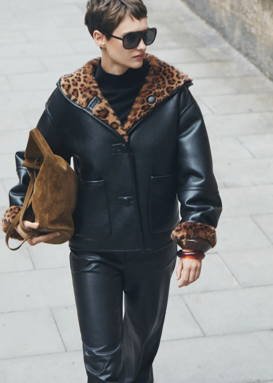 OpisWłochata tekstura. Efekt skóry. Model dwustronny. Model dwustronny. Model oversize. Wzór w lamparcie cętki. Dwie…
