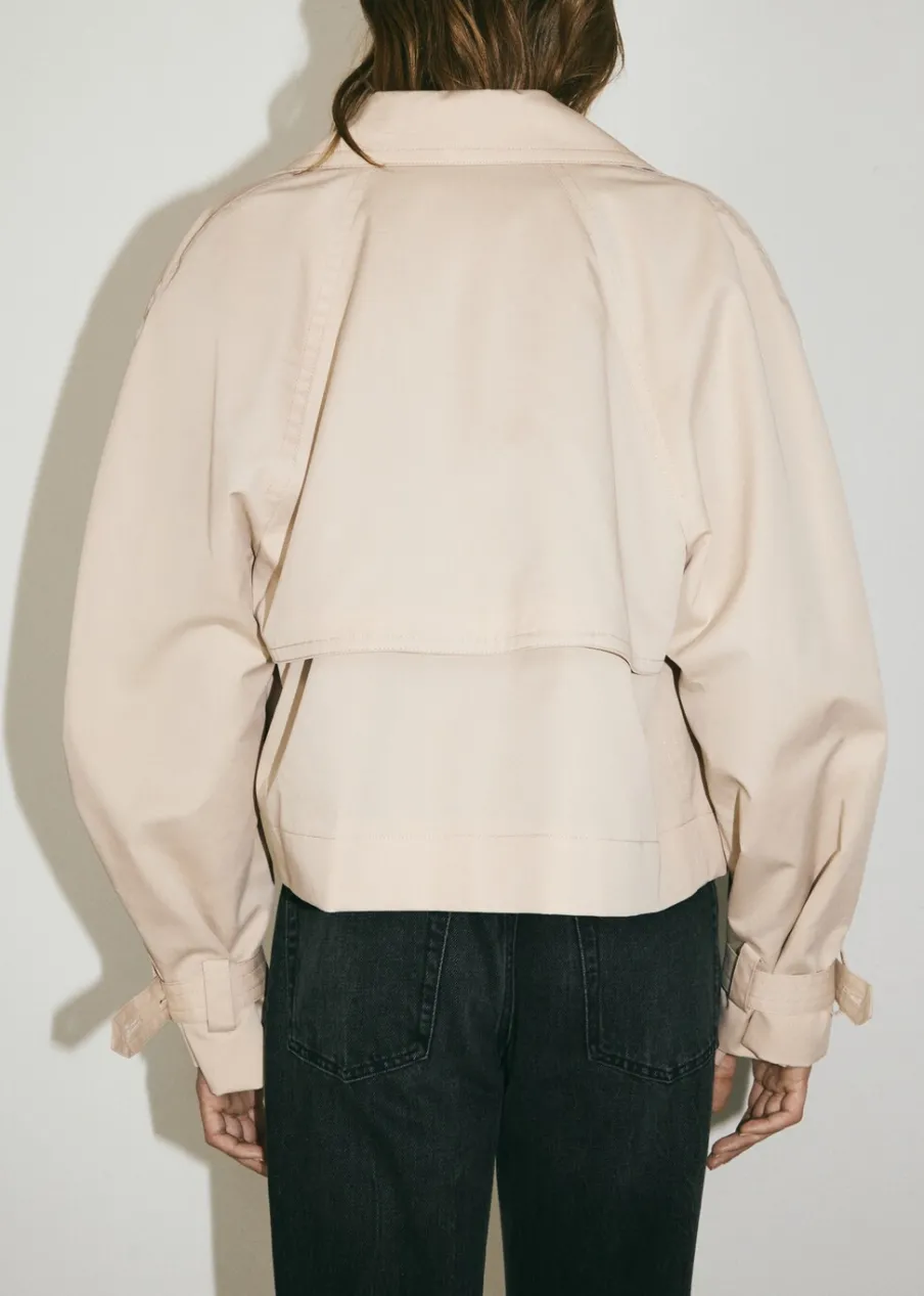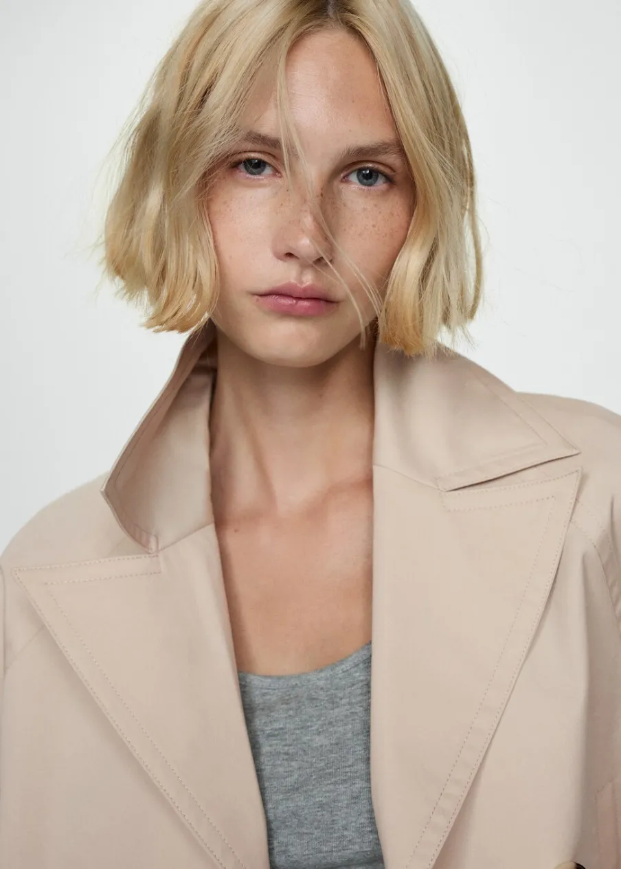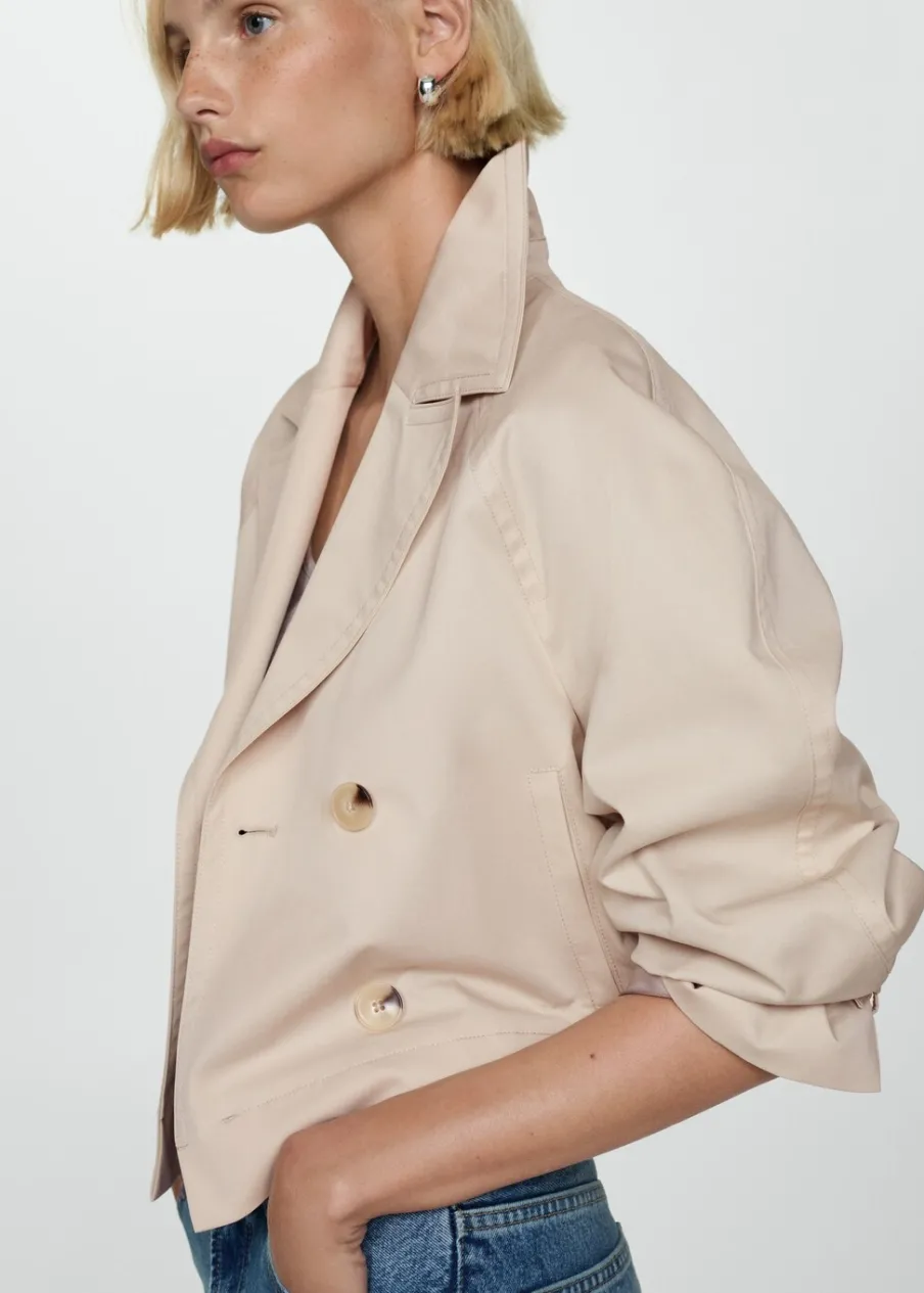Tkanina mieszanka bawełny. Model prosty. Deseń crop. Dekolt w szpic z kołnierzykiem. Klapy z nacięciem. Długi rękaw z podpięciem. Dwie kieszenie boczne. Dwurzędowe zapięcie. Wewnętrzna podszewka.