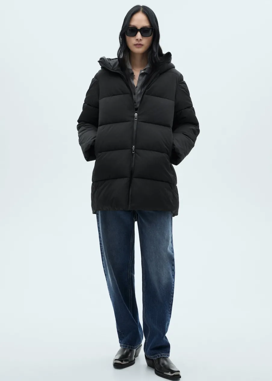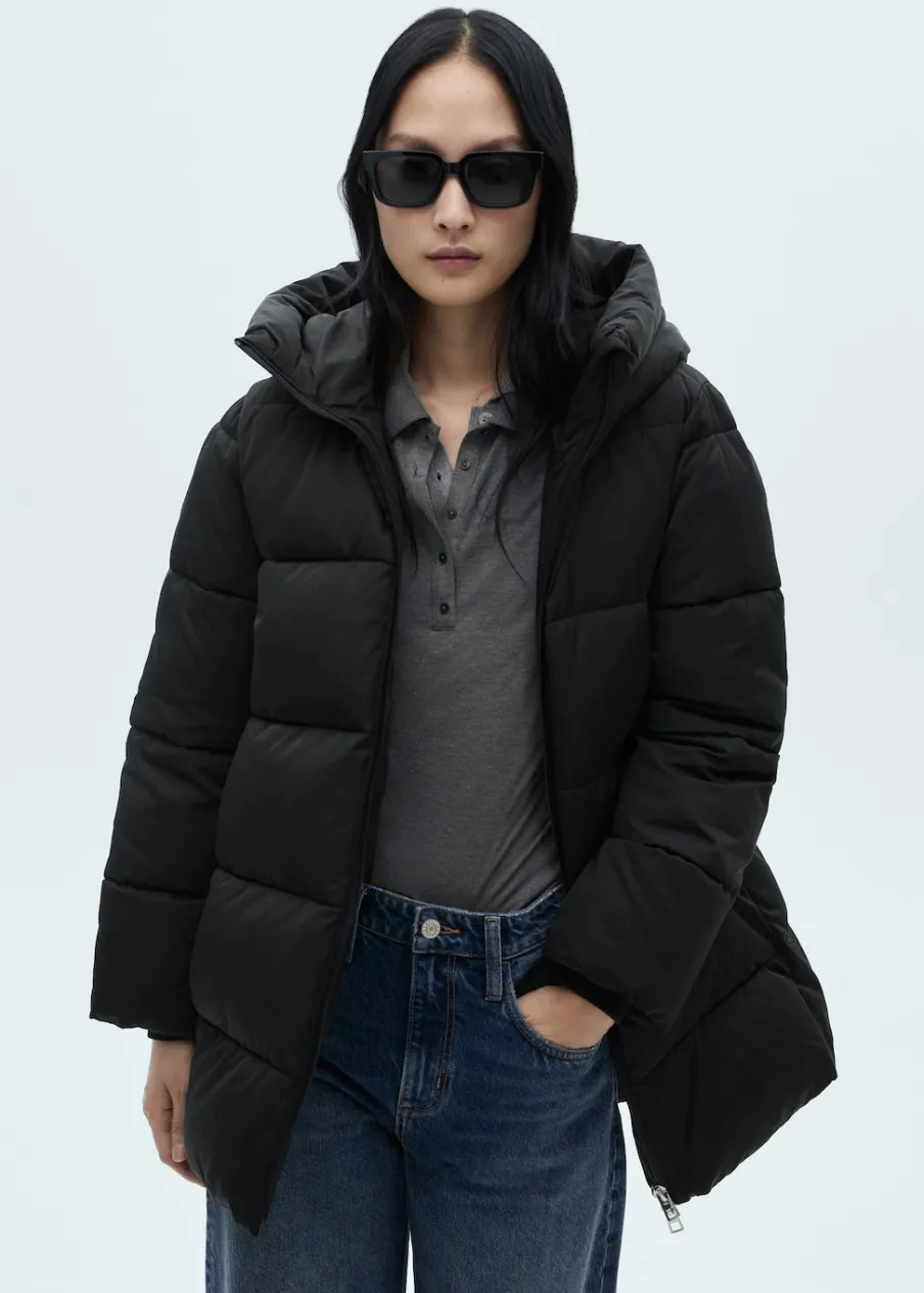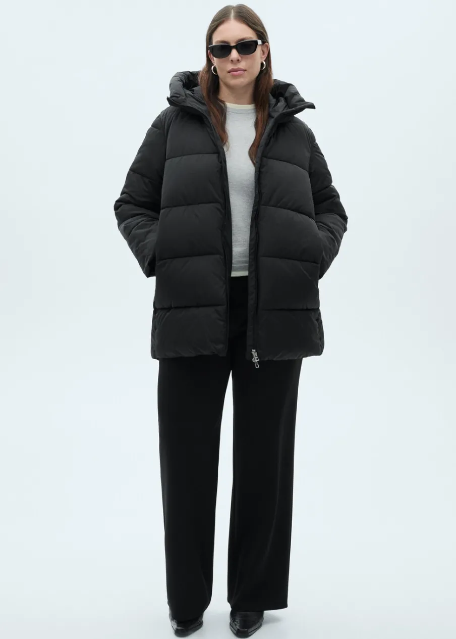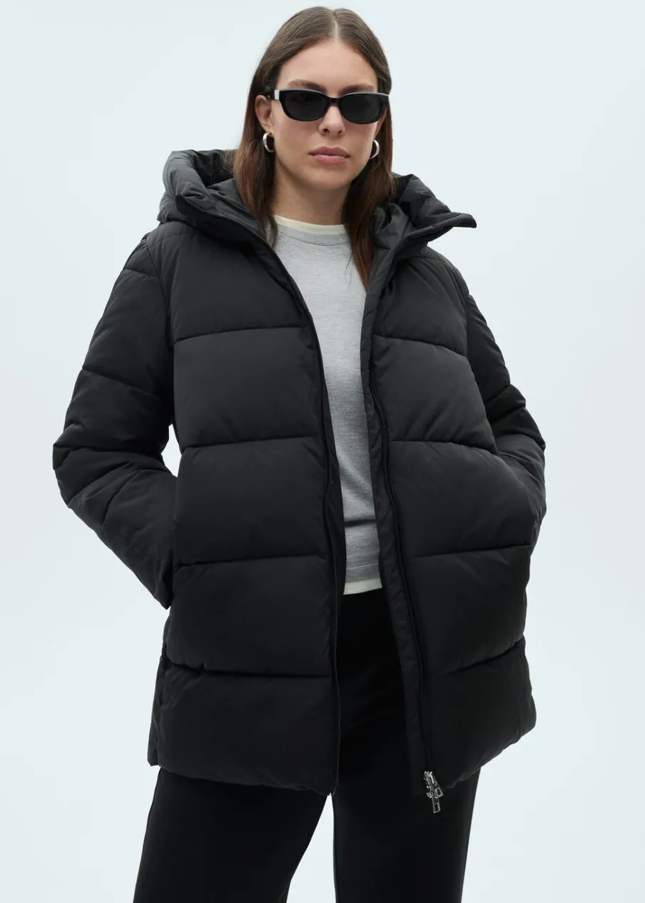 Water Repellent: trwałe wykończenie tego modelu chroni przed lekkim deszczem, odpycha cząsteczki wody i krople deszczu. Model pikowany. Model prosty. Golf. Kaptur. Długi rękaw z elastycznymi mankietami. Dwie kieszenie na zamek z boku. Z wypełnieniem. Zapięcie na podwójny suwak. Wewnętrzna podszewka. Modelka ma 175 cm wzrostu i nosi rozmiar S/36. Dostępne w Plus Size.