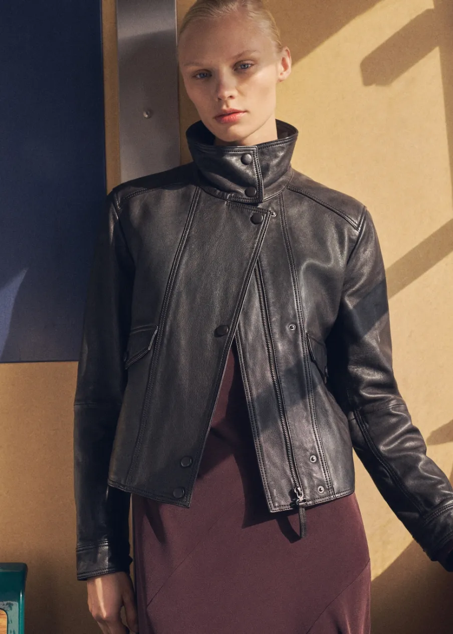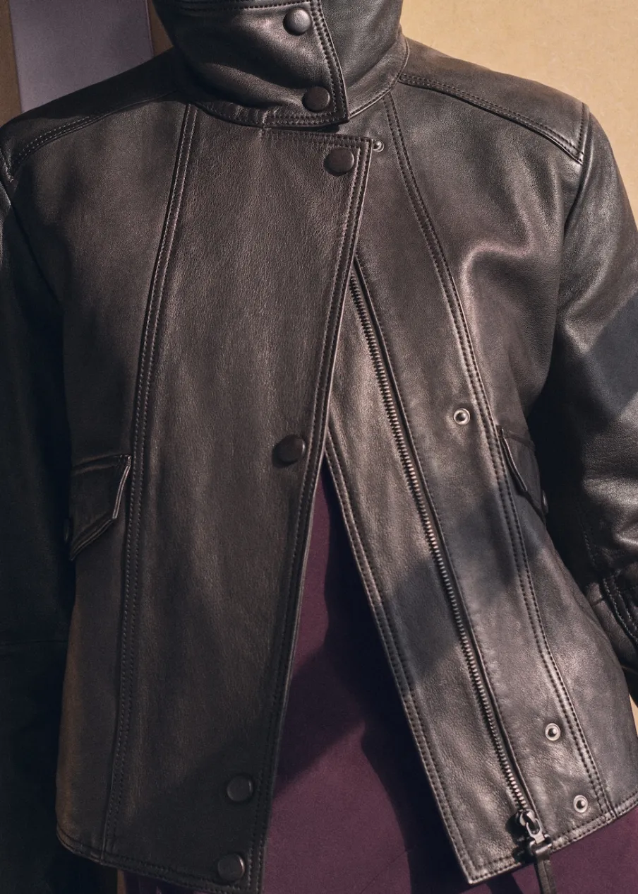 Skóra owcza 100%. Model prosty. Golf. Model standardowy. Długi rękaw. Dwie kieszenie z patkami na guzik z przodu. Tylko podszewka.