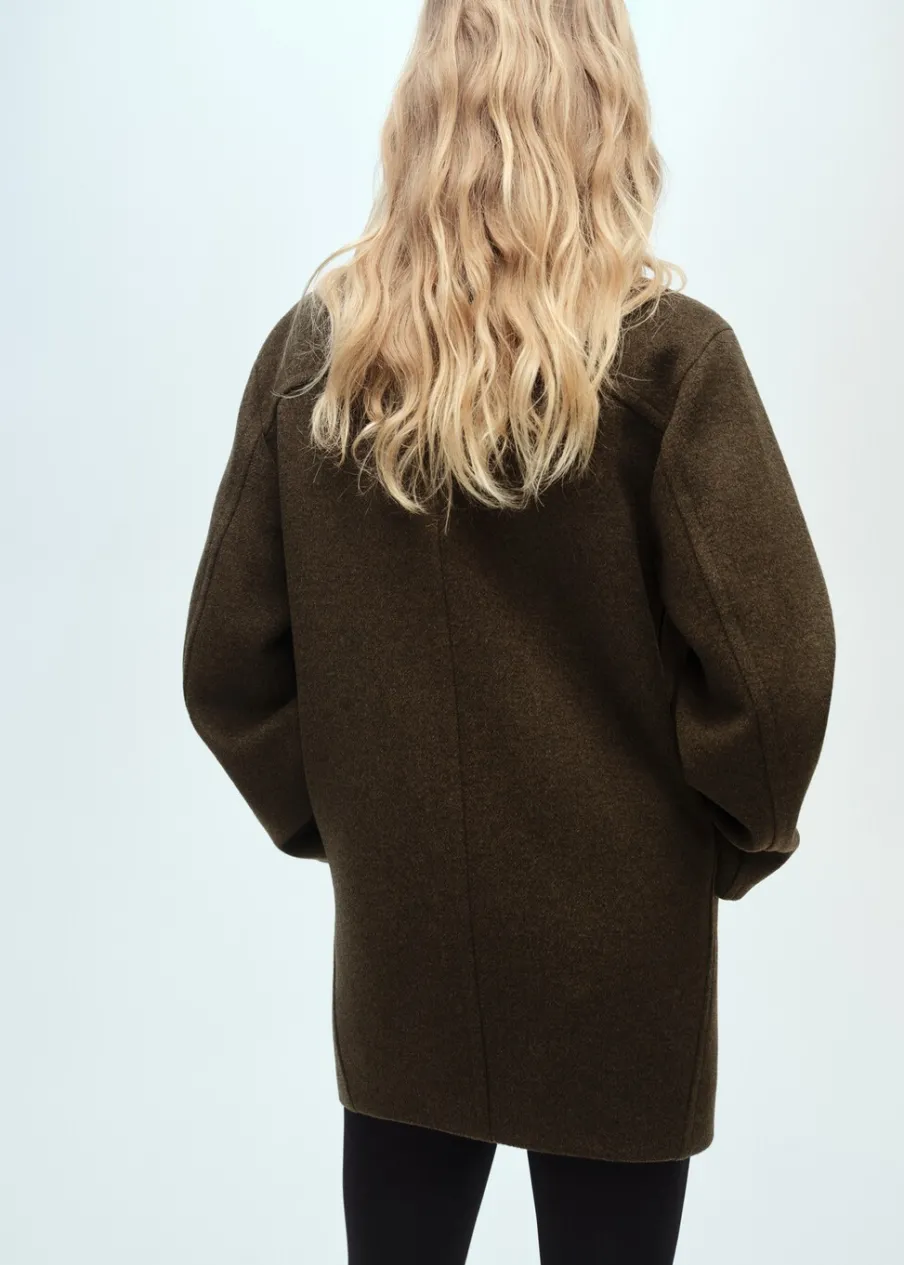Tkanina mieszanka wełny. Model standardowy. Model prosty. Kołnierz z klapami. Długi rękaw. Dwie wpuszczane kieszenie boczne. Dwurzędowe zapięcie. Wewnętrzna podszewka.