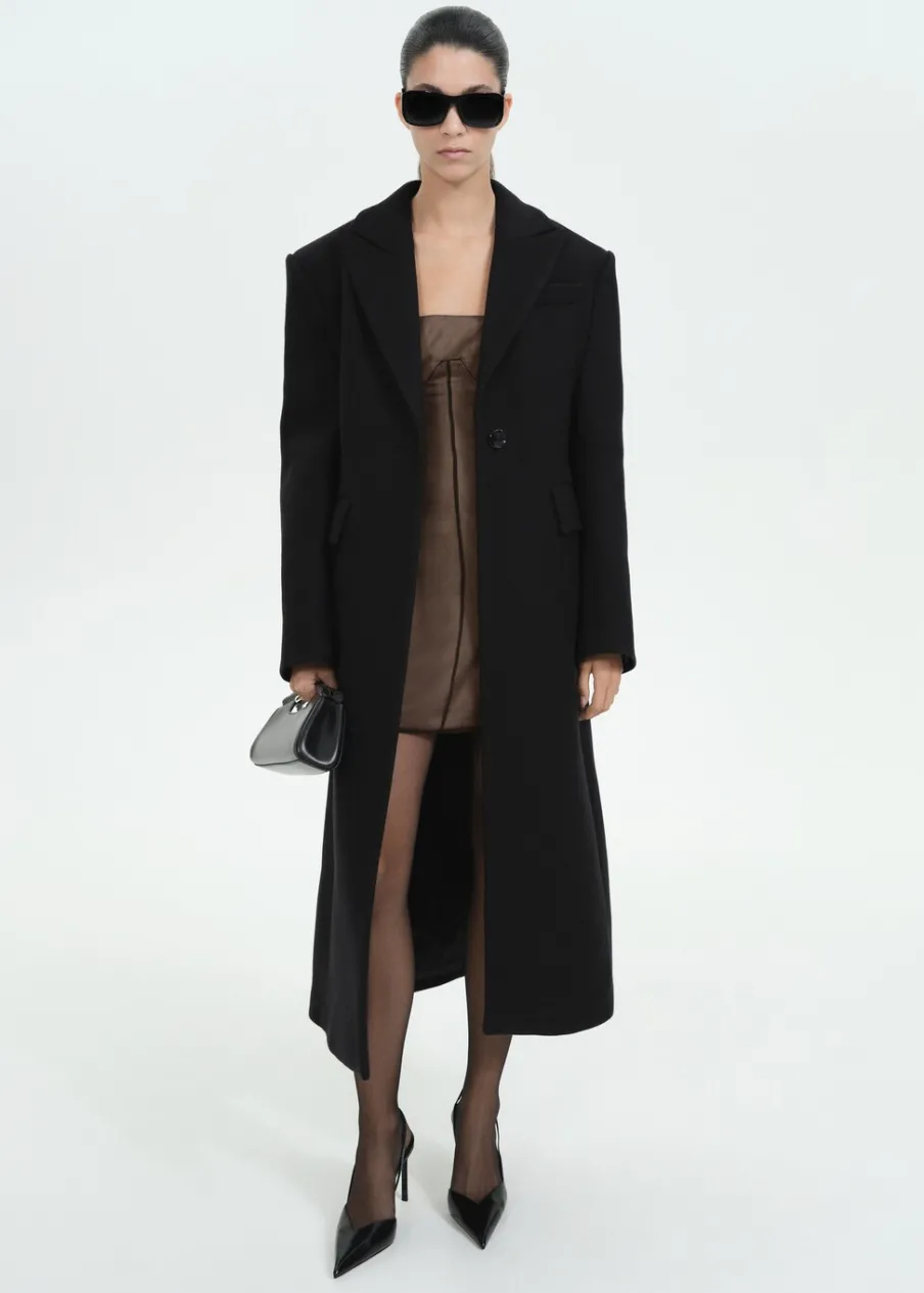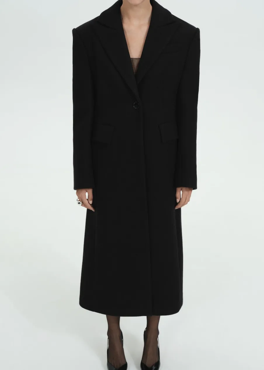 Tkanina mieszanka wełny. Ciężka struktura. Model prosty. Model długi. Dekolt w szpic z kołnierzykiem. Długi rękaw. Dwie kieszenie z przodu z wypustkami i patką. Zapięcie z przodu na guzik. Wewnętrzna podszewka. Rozcięcie z tyłu u dołu. Modelka ma 177 cm wzrostu i nosi rozmiar S/36. Kolekcja wizytowa. Kolekcja Selection.