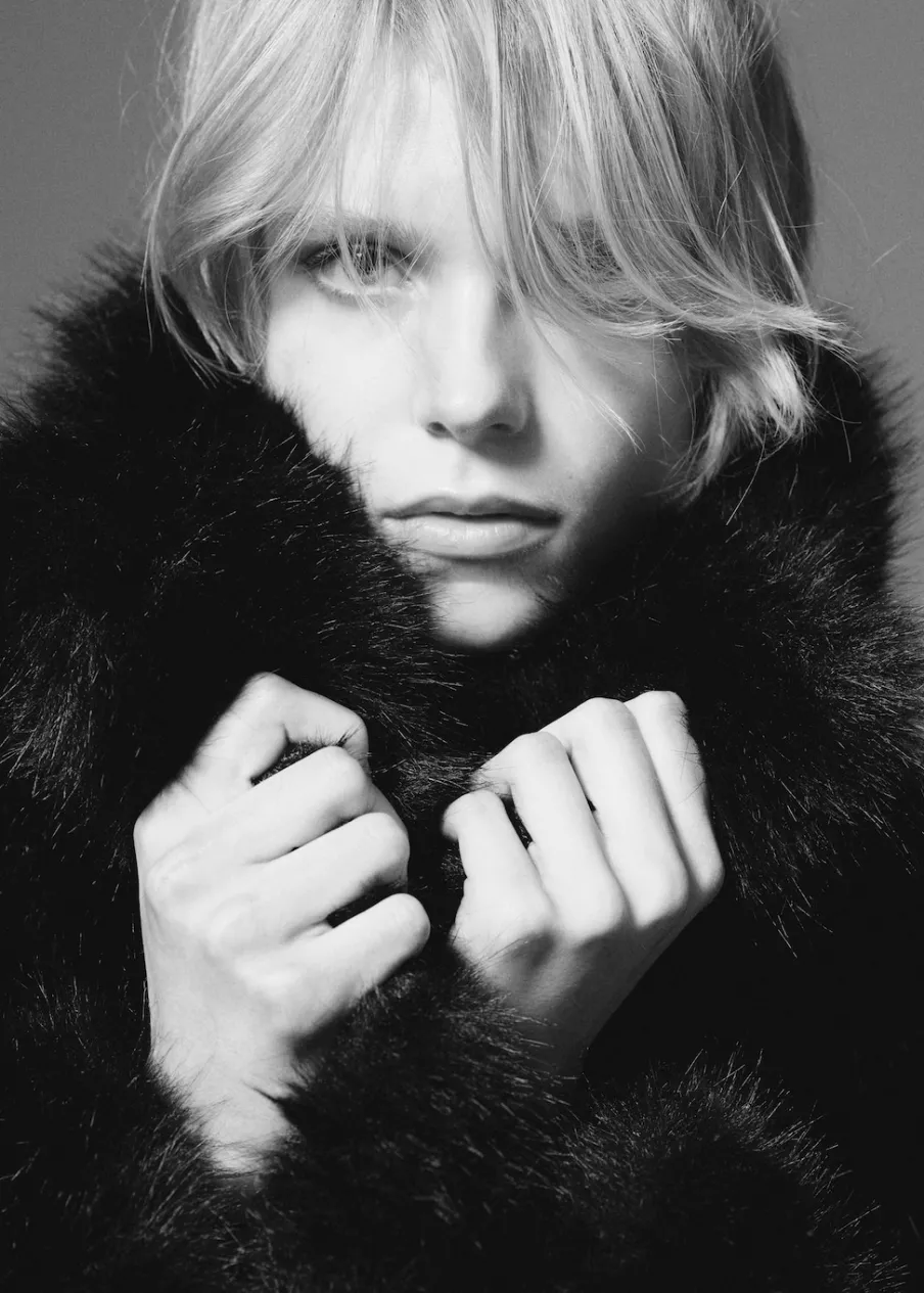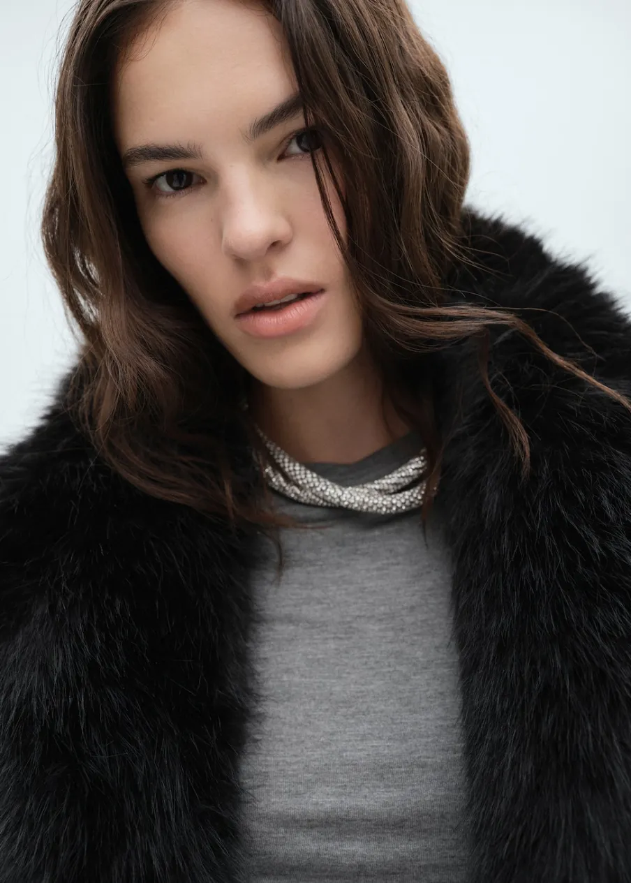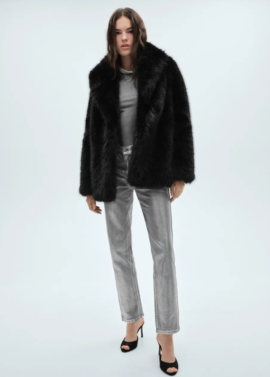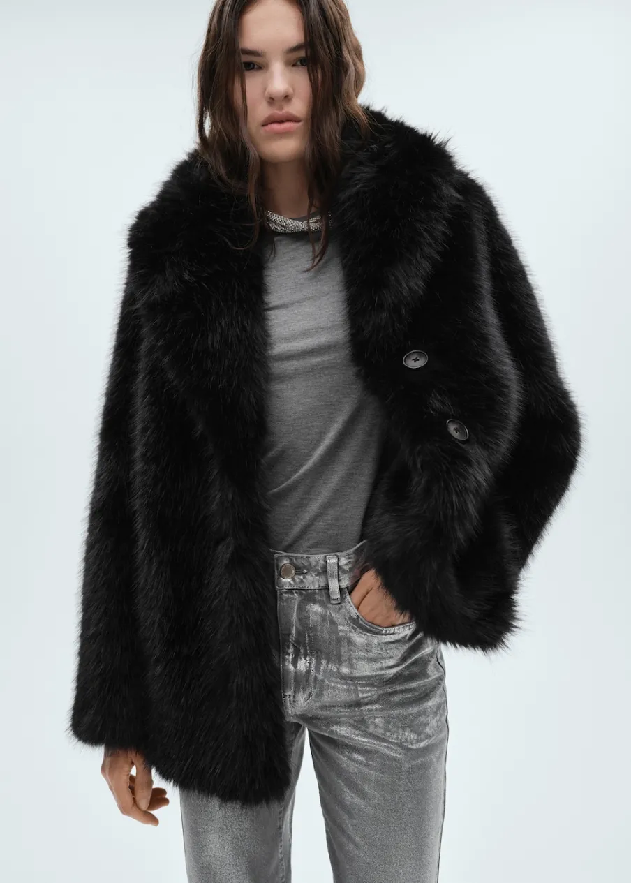 Włochata tekstura. Ciężka struktura. Model oversize. Krój do kolan. Dekolt w szpic z kołnierzykiem. Długi rękaw. Zapięcie na zatrzaski z przodu. Wewnętrzna podszewka. Kolekcja wizytowa. Modelka ma 178 cm wzrostu i nosi rozmiar S/36.