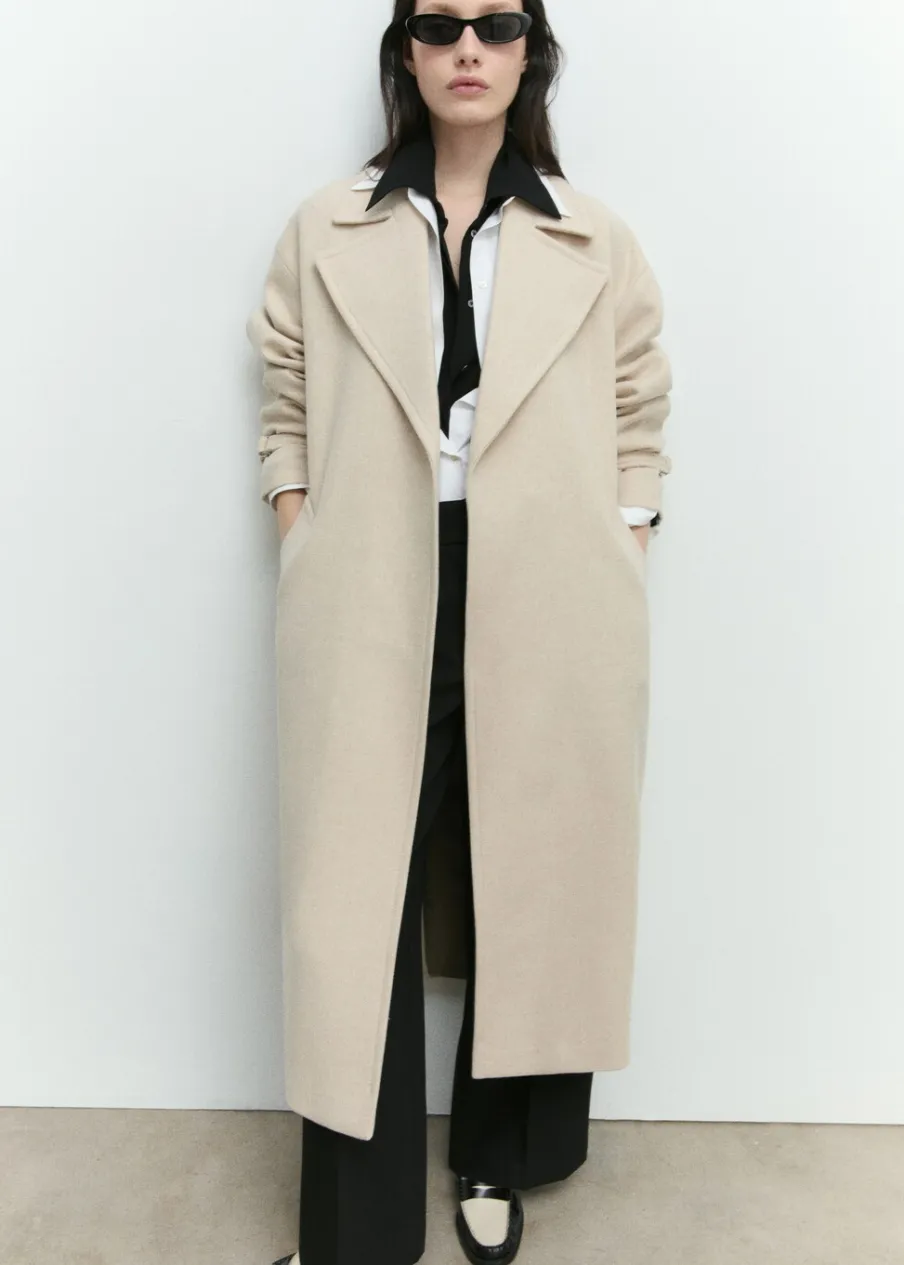 Ciężka struktura. Zapięcie z przodu. Model długi. Model oversize. Klapy. Długi rękaw. Tylko podszewka.