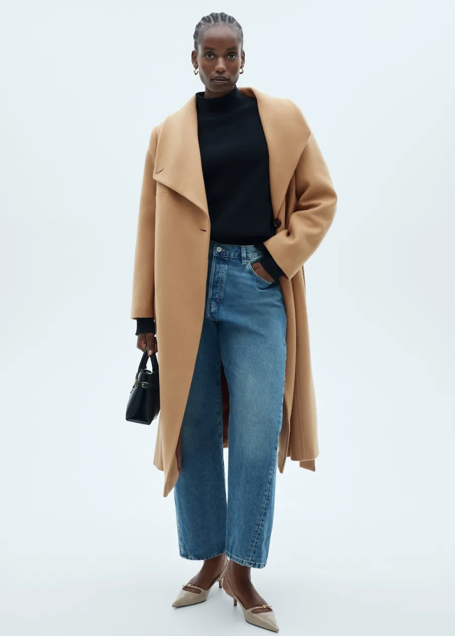 Nadruk: bez nadruku. Długość rękawa: długi. Krój: prosty. Położenie zapięcia: z przodu. Długość: długa. Wypełnienie/podszewka: tylko podszewka. Tkanina płaska/ciężka. Kołnierz komin.
