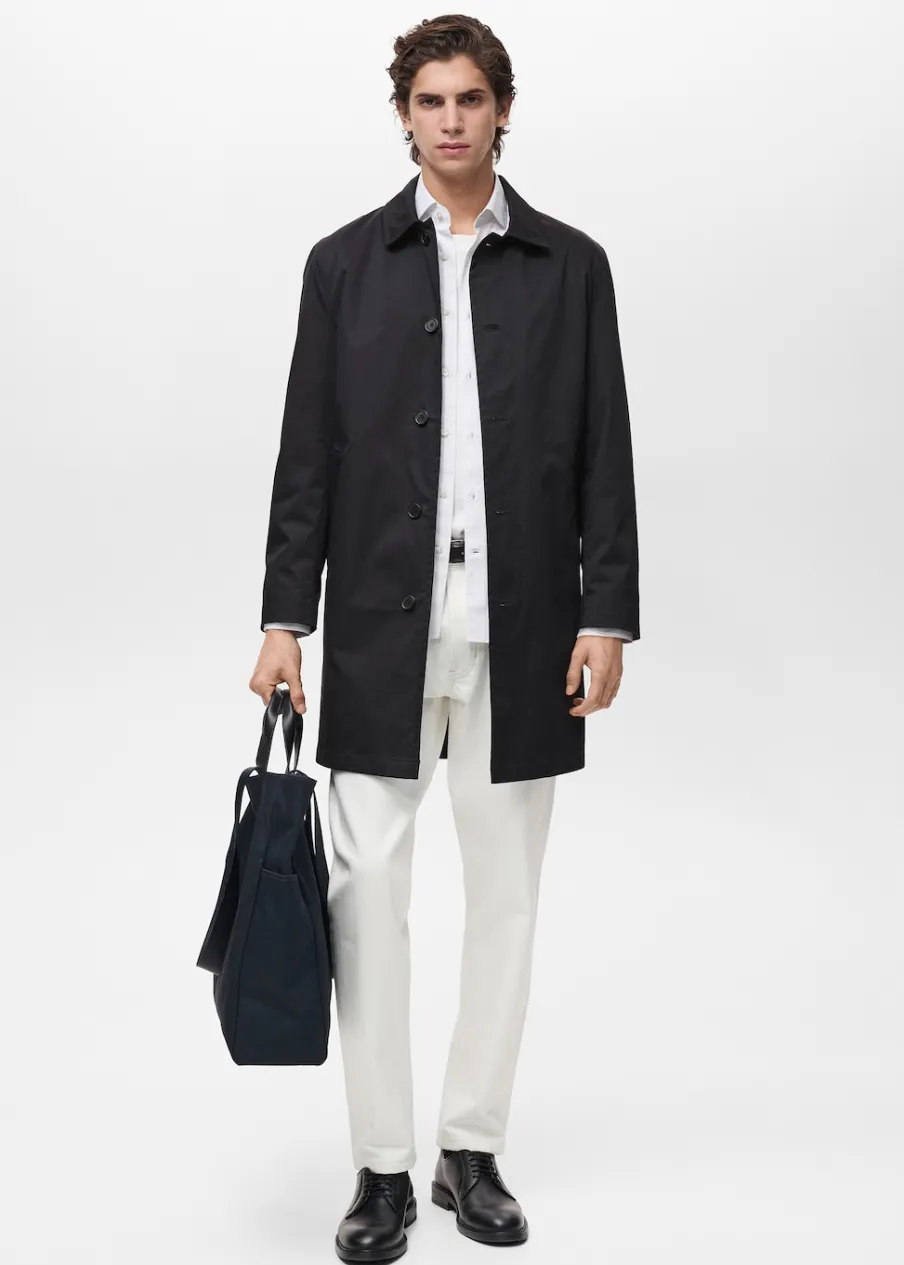 ESSENTIALS: Made to last. Kolor niebieski dostępny tylko online. Water Repellent: trwałe wykończenie tego modelu chroni przed lekkim deszczem, odpycha cząsteczki wody i krople deszczu. Klasyczny kołnierzyk. Zapięcie na guziki z przodu. Długi, zapinany rękaw. Dwie kieszenie z wypustkami z przodu. Rozcięcie z tyłu u dołu. Wewnętrzna podszewka. Wewnętrzna kieszeń. Model ma 190 cm wzrostu i nosi rozmiar M.