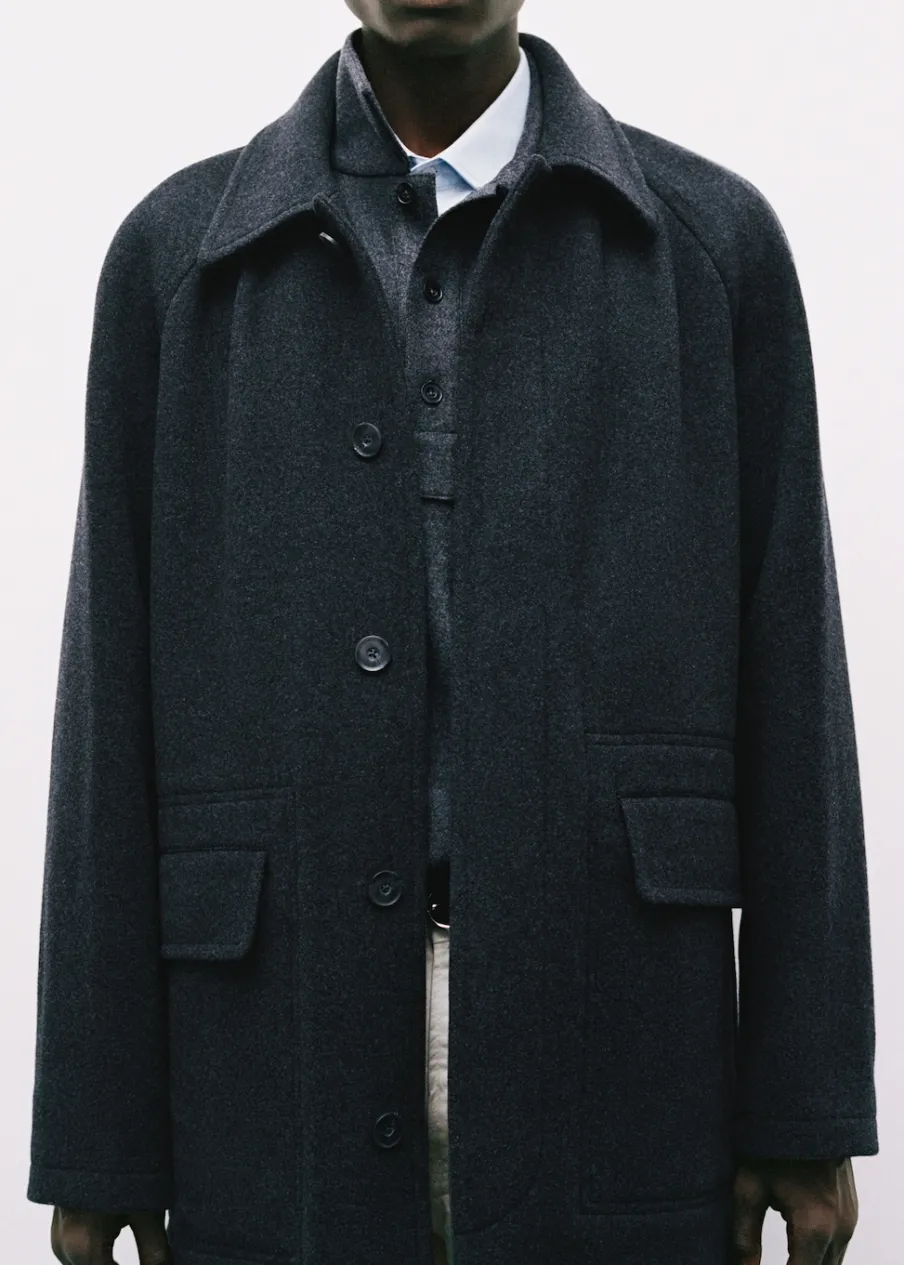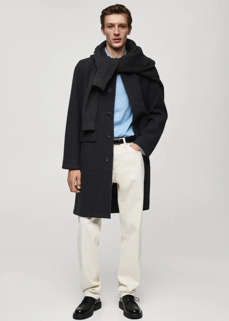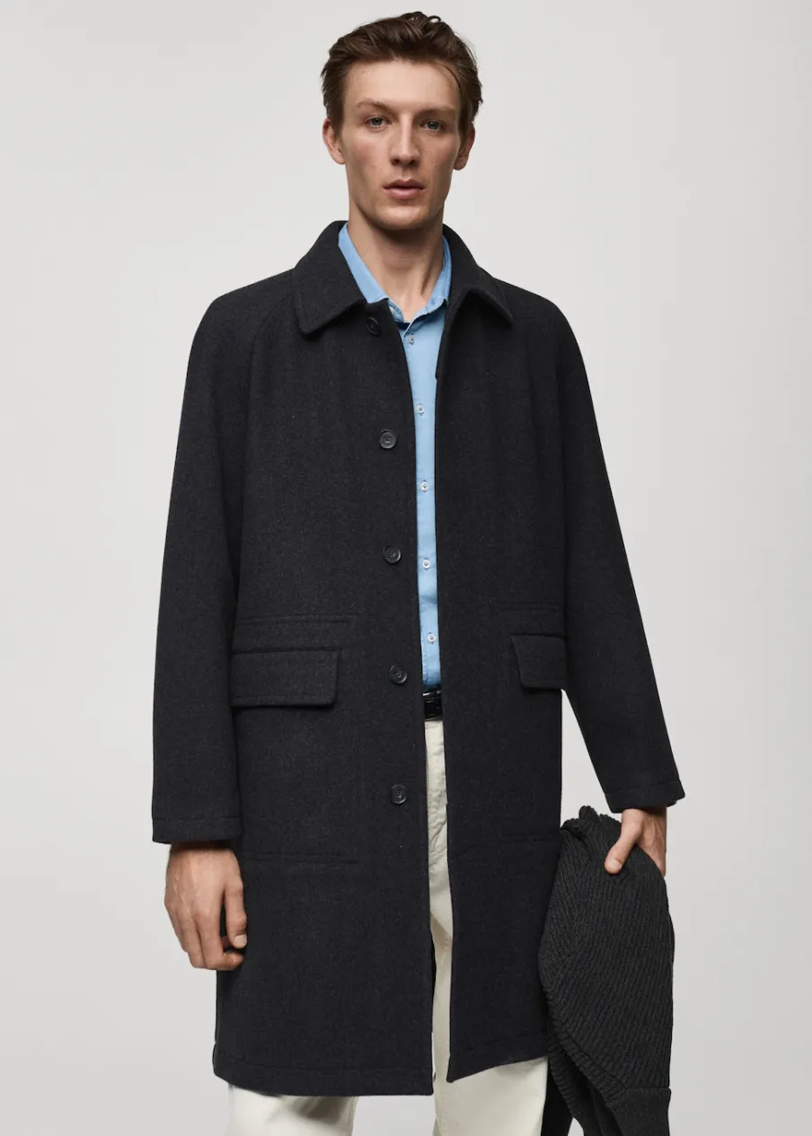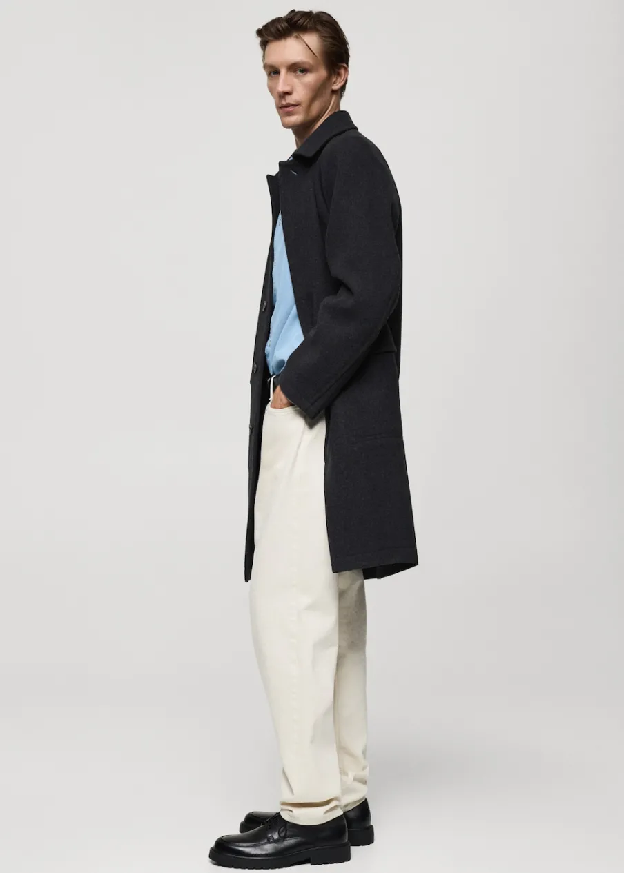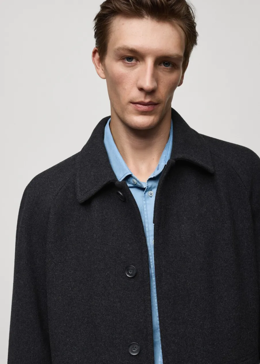 OpisTkanina mieszanka wełny. Krój regular. Kryte zapięcie na guziki z listwą z przodu. Długi rękaw. Prosty dół. …
