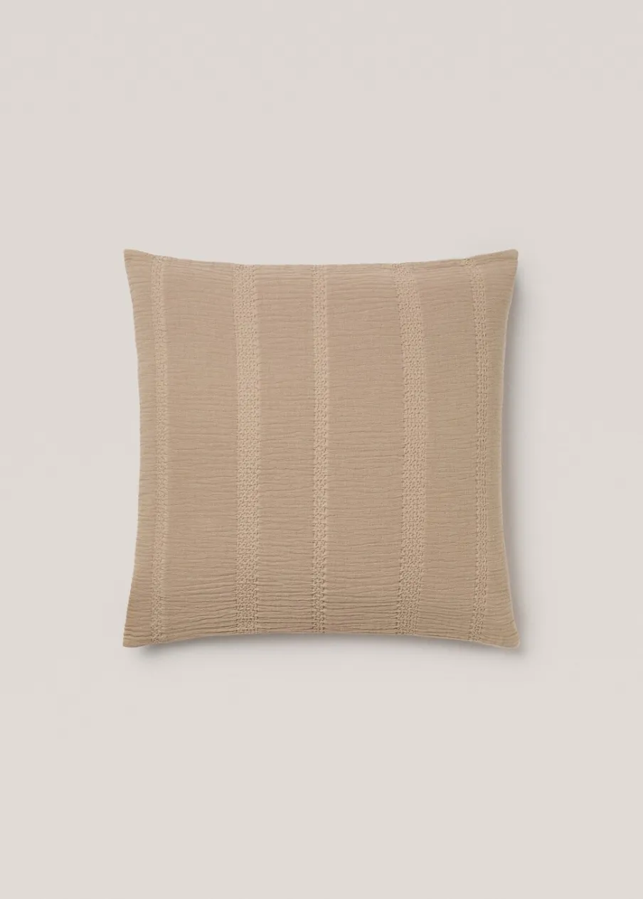 Wymiary: 50 x 50 cm. Teksturowana, bawełniana tkanina. Postrzępione nogawki. Tkanina z 100% bawełny.
