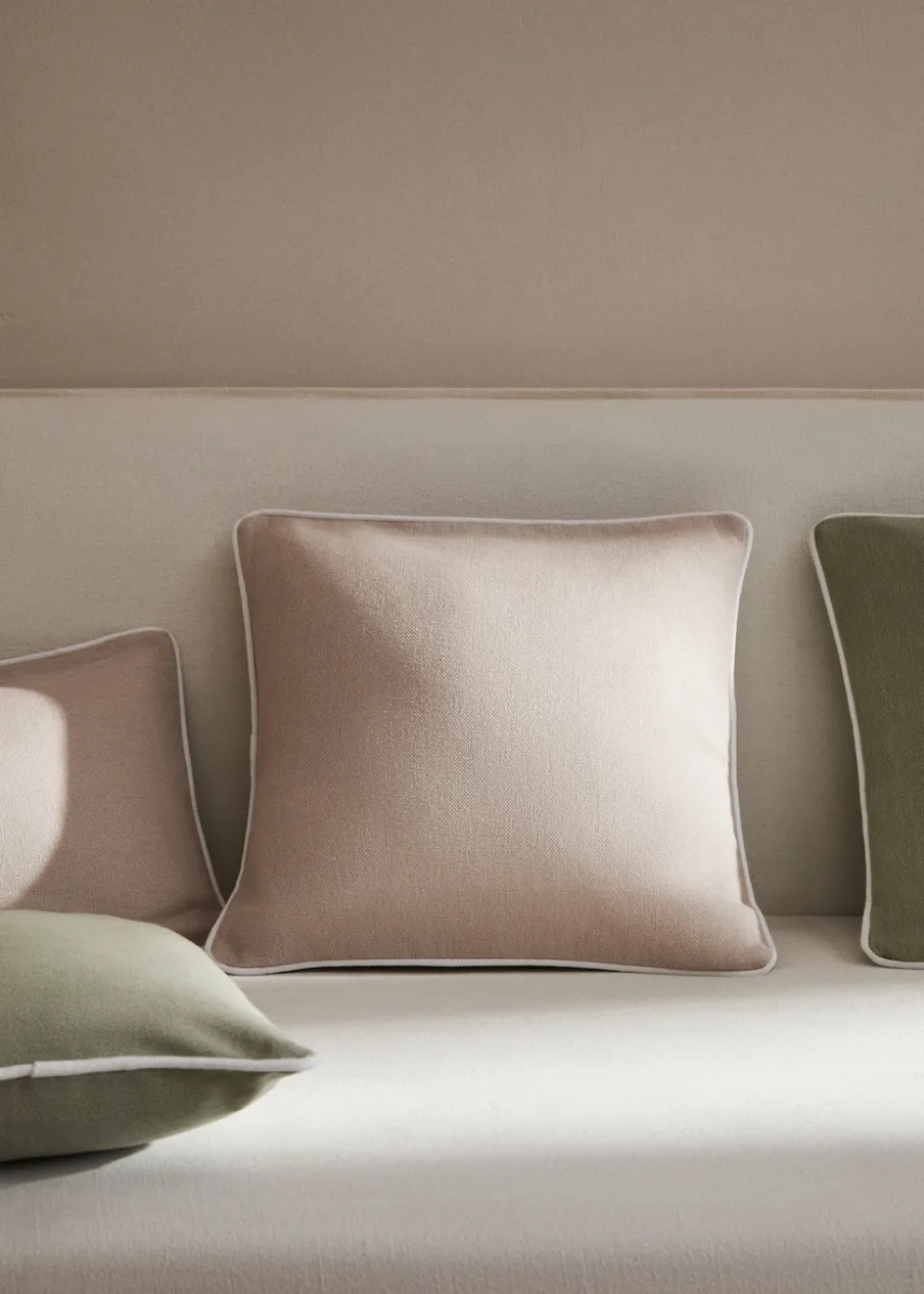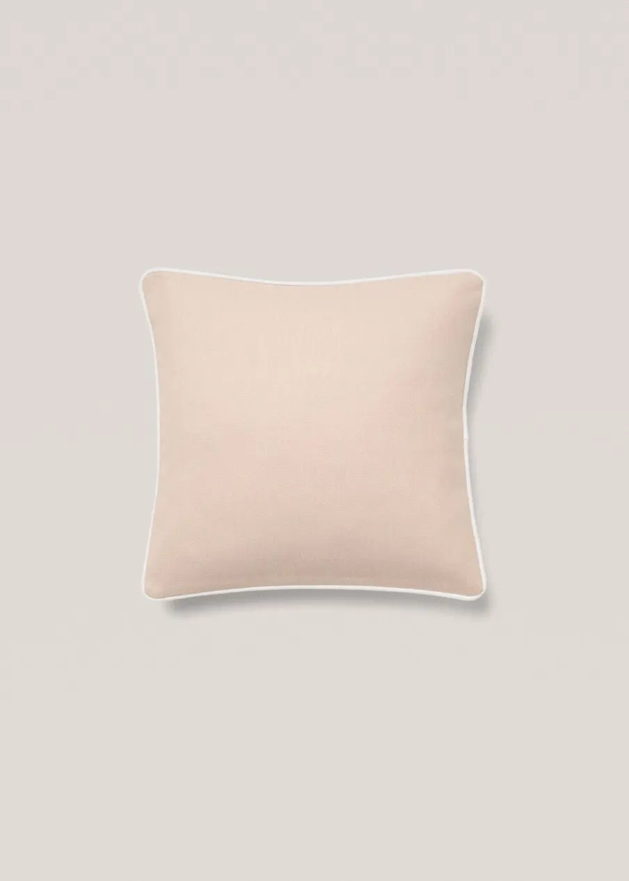 Kontrastowa lamówka. Zamknięcie na klapę. Bez wkładu. Wymiary: 45 x 45 cm. Tkanina z 100% bawełny.