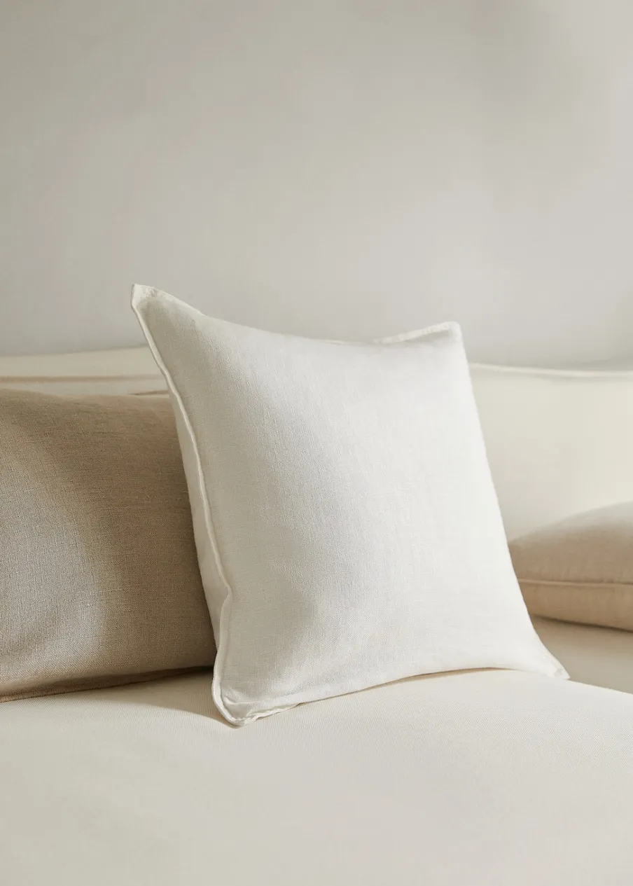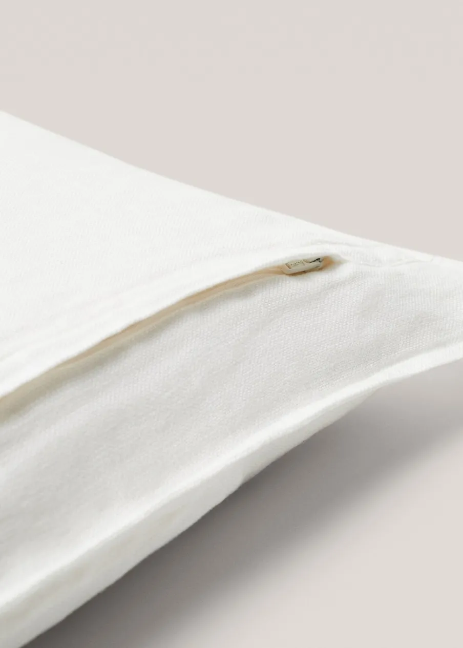 Tkanina z 100% lnu. Tkanina gładka. Len z czasem staje się coraz miększy i wyróżnia się elastycznością; jest lekko pomarszczony, ale nie wymaga prasowania. Ponadczasowa, wytrzymała i zrównoważona tkanina. Zapięcie na suwak. Ozdobny szew. Bez wkładu. Gładkie kolory. Wymiary: 45 x 45 cm.