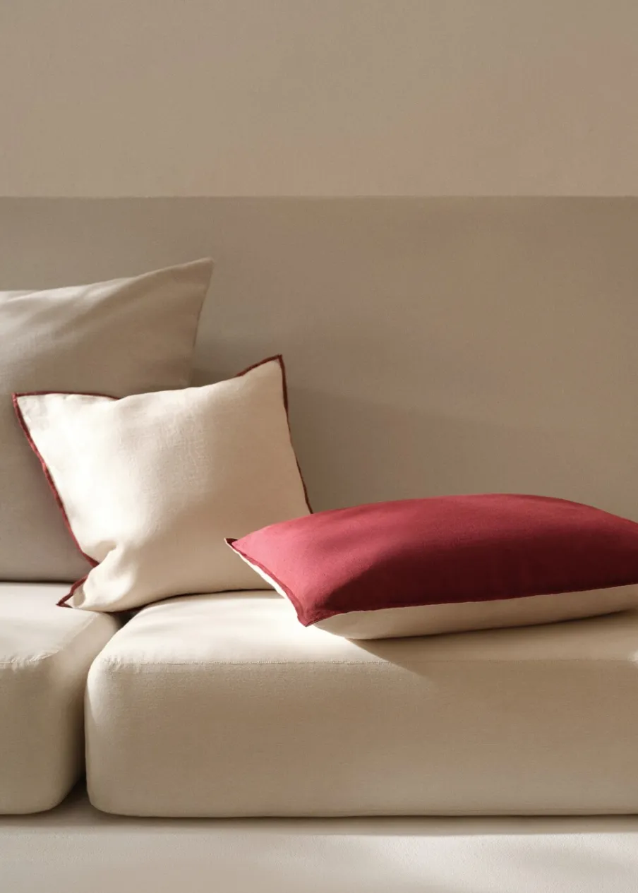 Tkanina z 100% lnu. Len z czasem staje się coraz miększy i wyróżnia się elastycznością; jest lekko pomarszczony, ale nie wymaga prasowania. Ponadczasowa, wytrzymała i zrównoważona tkanina. Dwukolorowe. Dwustronna tkanina. Zapięcie na suwak. Bez wkładu. Wymiary: 40 x 60 cm.