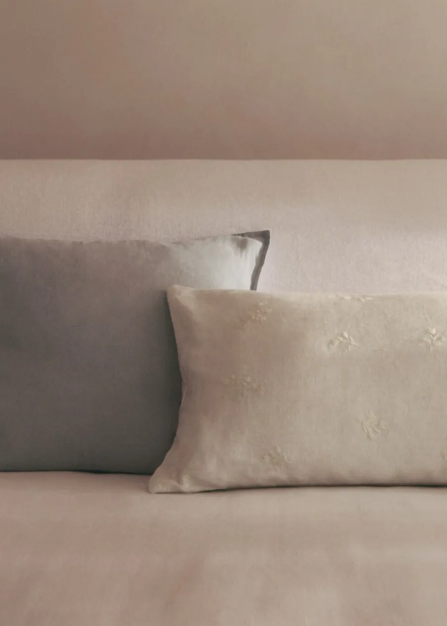 Sprzedaż na sztuki. Wymiary: 35 x 90 cm. W romantycznym stylu. Tkanina z 100% lnu. Kwiatowy haft. Zapięcie na suwak. Bez wkładu.