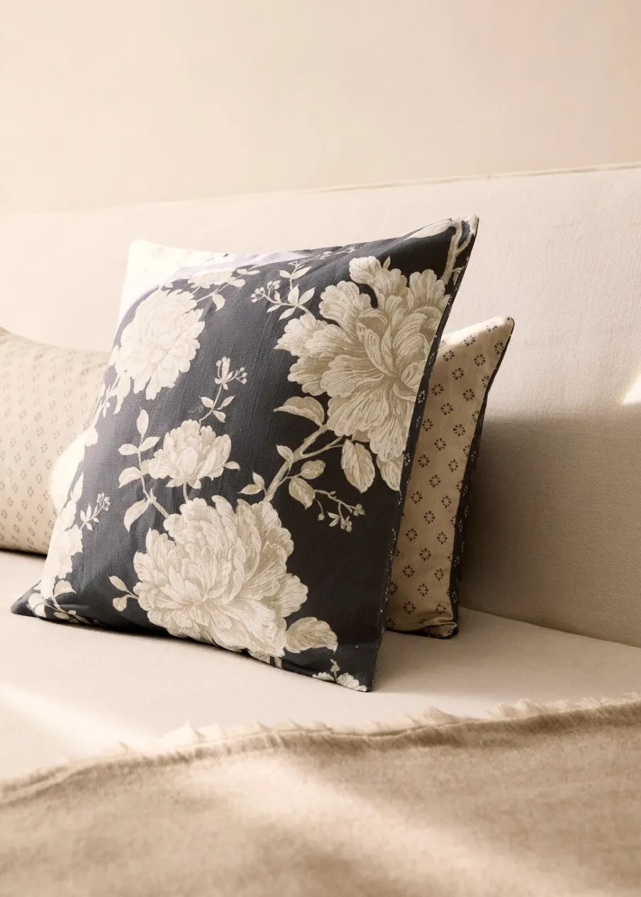 Wymiary: 45 x 45 cm. Kwiatowy wzór. Bez wkładu. Będzie ozdobnym i naturalnym akcentem w każdym pomieszczeniu. Sprzedaż na sztuki. Skład: 54% bawełna, 46% len.