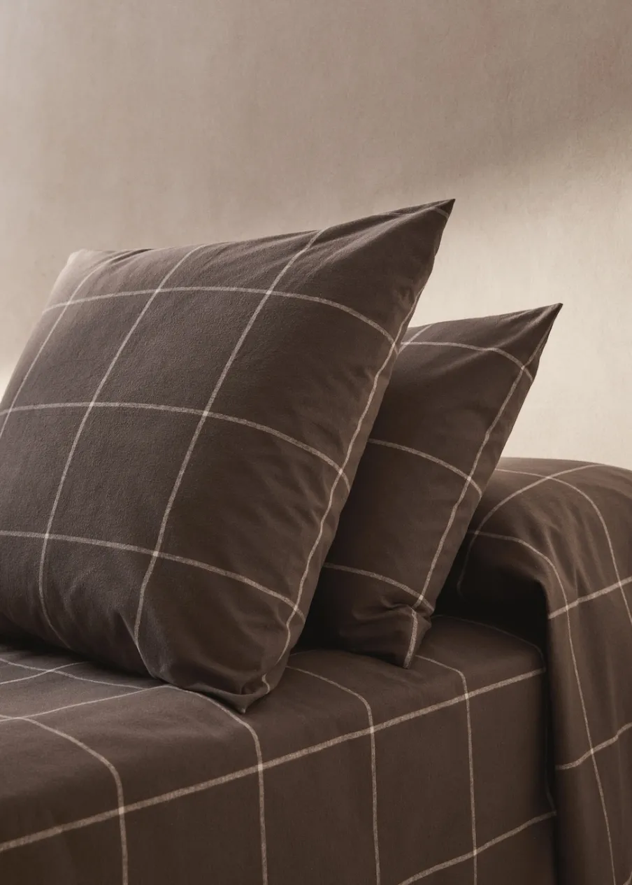 Zestaw 2 szt. Wymiary: 60 x 60 cm. Tkanina perkalowa z 100% bawełny. Tkanina flanelowa. Deseń w kratę. Miękka tekstura. Pasuje do innych artykułów z kolekcji. Bez wkładu. Flanela znakomicie chroni przed zimnem. Jest wygodna, wytrzymała i idealna na jesienne i zimowe noce. Wprowadzi przytulny rustykalny styl do sypialni.