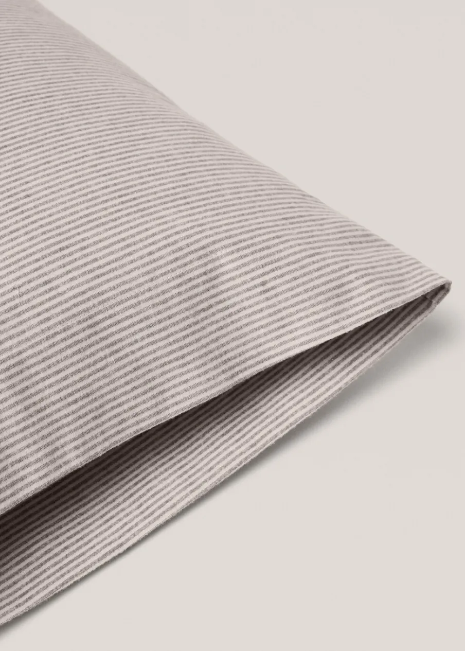 Wymiary: 45 x 110 cm. 100% bomull. Tkanina flanelowa. Wzór w paski. Pasuje do innych artykułów z kolekcji. Bez wkładu. Flanela znakomicie chroni przed zimnem. Jest wygodna, wytrzymała i idealna na jesienne i zimowe noce. Zapewni wypoczynek w cieple i komforcie zimą.
