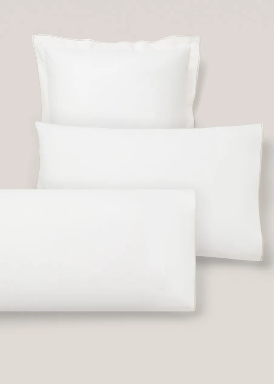 Wymiary: 60 x 60 cm. Bawełna 100%. Bawełniany perkal jest miękką i elastyczną tkaniną o wysokiej oddychalności. Gęstość splotu 200 TC zapewnia maksymalną miękkość, wytrzymałość i oddychalność, a także wrażenie lekkości w dotyku. Zestaw dwóch par. Bez wkładu. Podwójny ścieg rolujący owerlokowy.