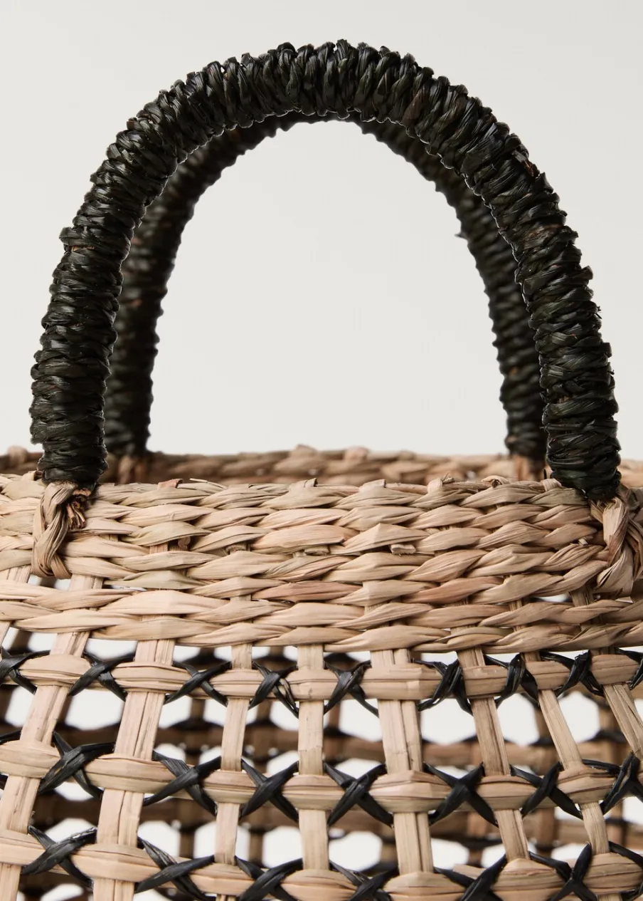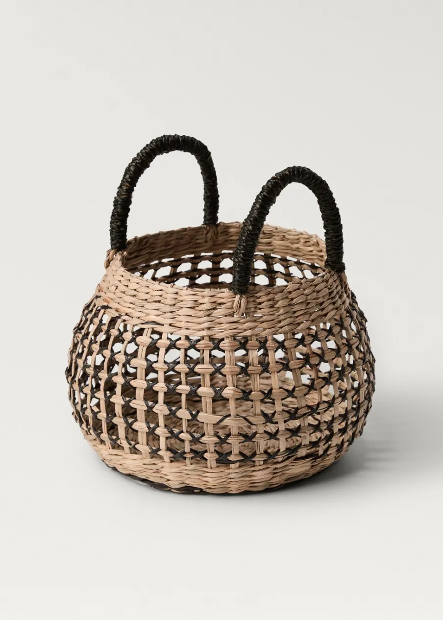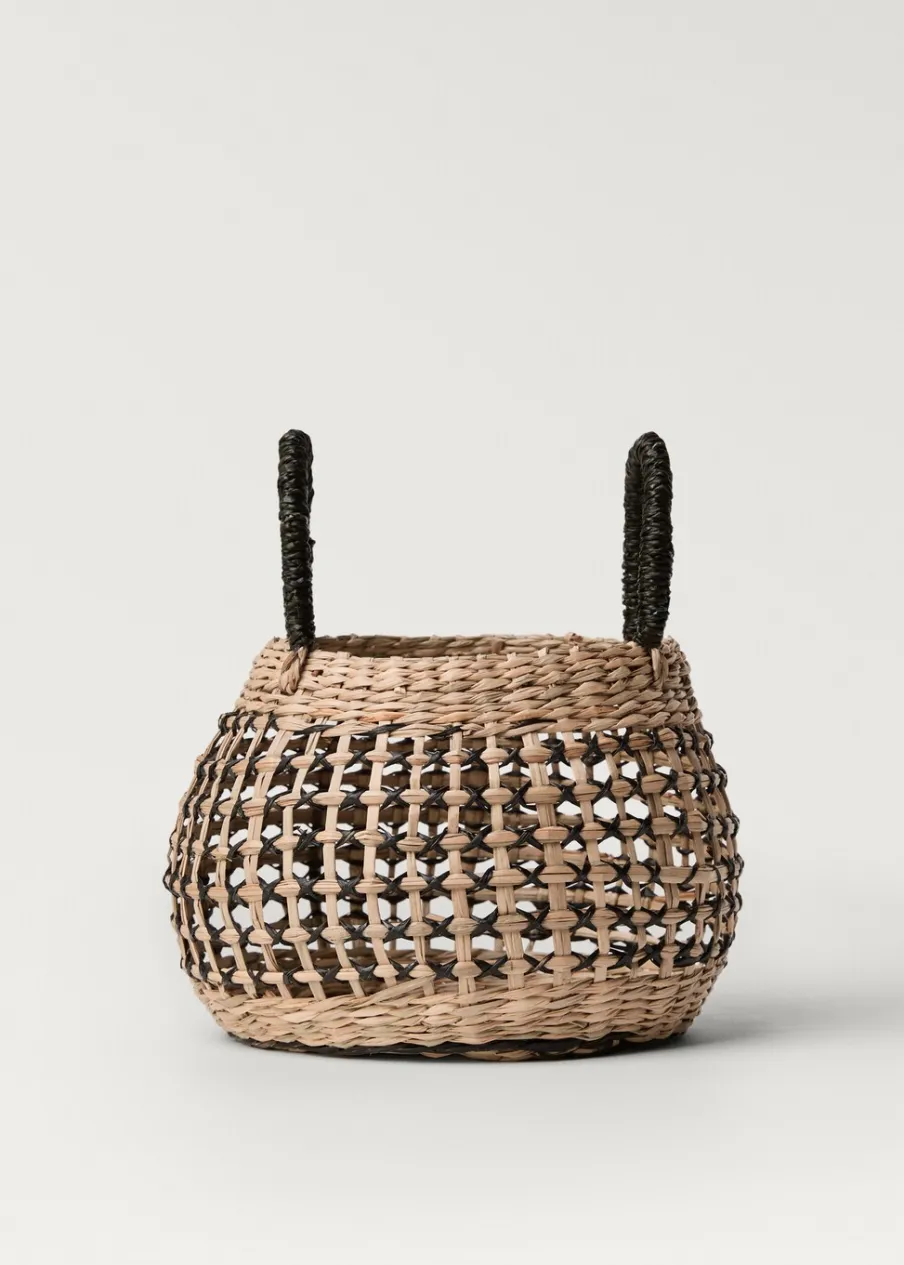Przedmiot dekoracyjny. 100% alga. Wysokość: 17 cm. Podwójny uchwyt. Dwukolorowy deseń. Nasz koszyk nie tylko jest praktycznym sposobem na utrzymanie porządku w domu, ale także doda ciepłego charakteru i tekstury do wystroju wnętrza. Idealny wybór do połączenia z różnymi stylami dekoracji. Połączenie funkcjonalności i elegancji.