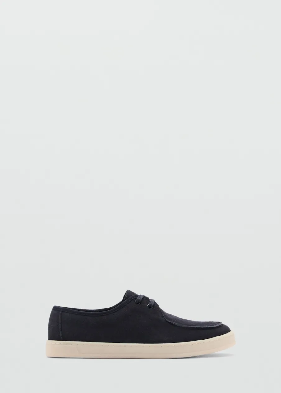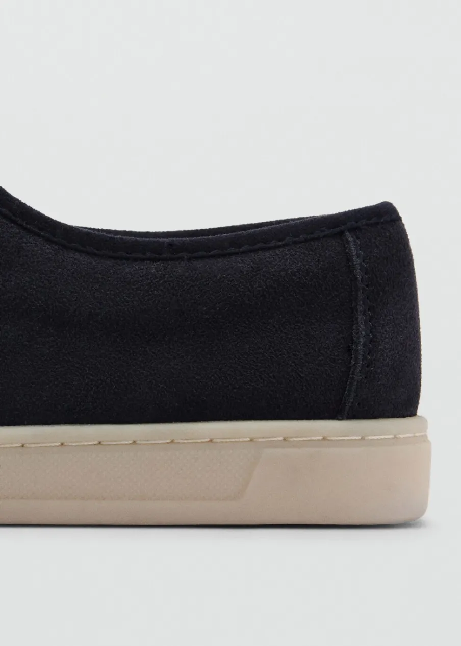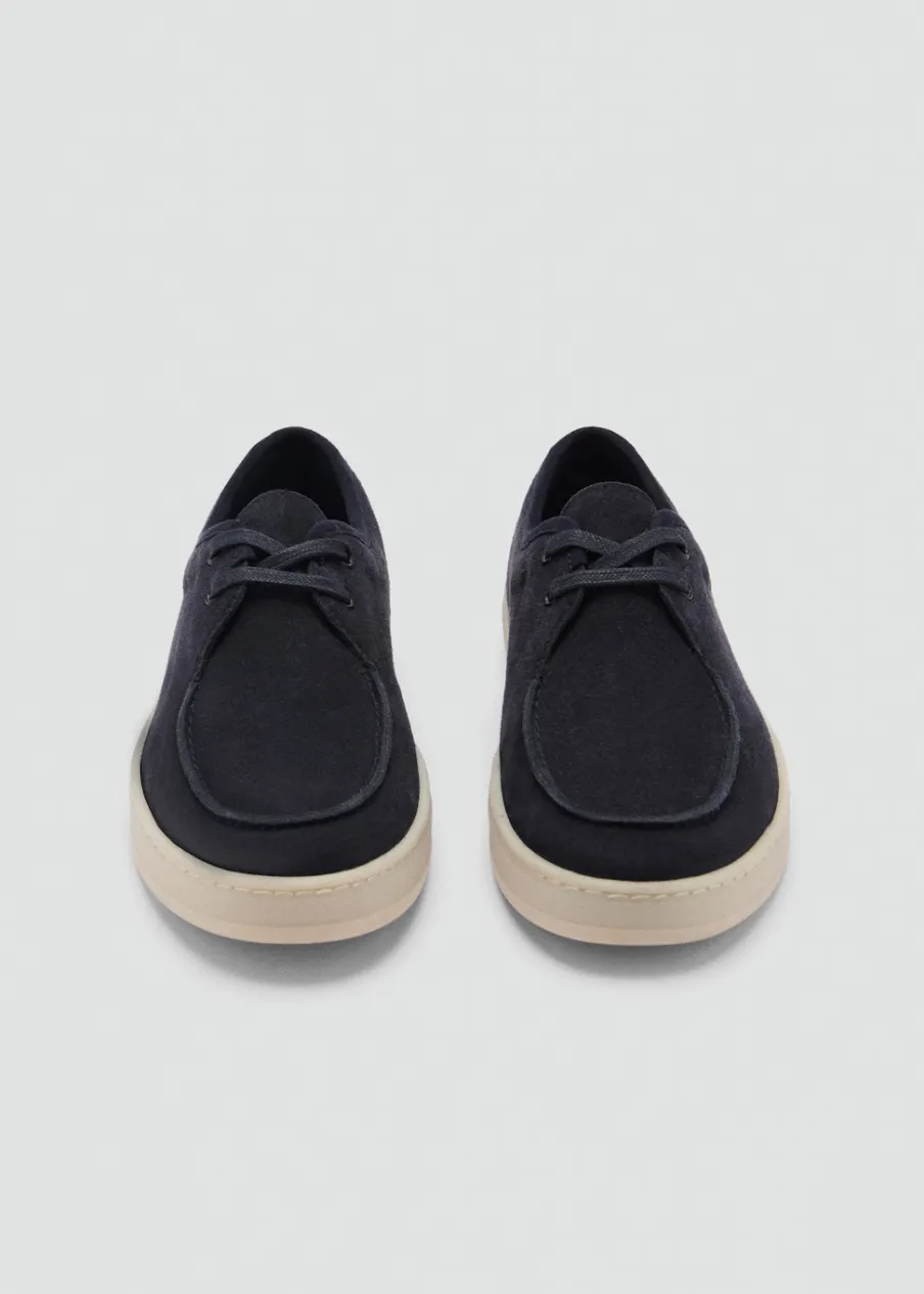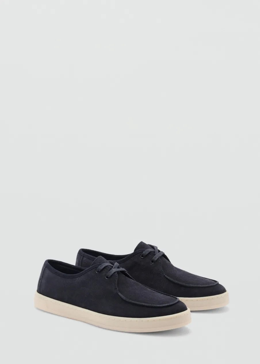 100% skóra bydlęca. Zamszowe wykończenie. Sznurowanie na dwie dziurki. Stębnowane detale. Zaokrąglony nosek. Podeszwa z gumy w kontrastowym kolorze.
