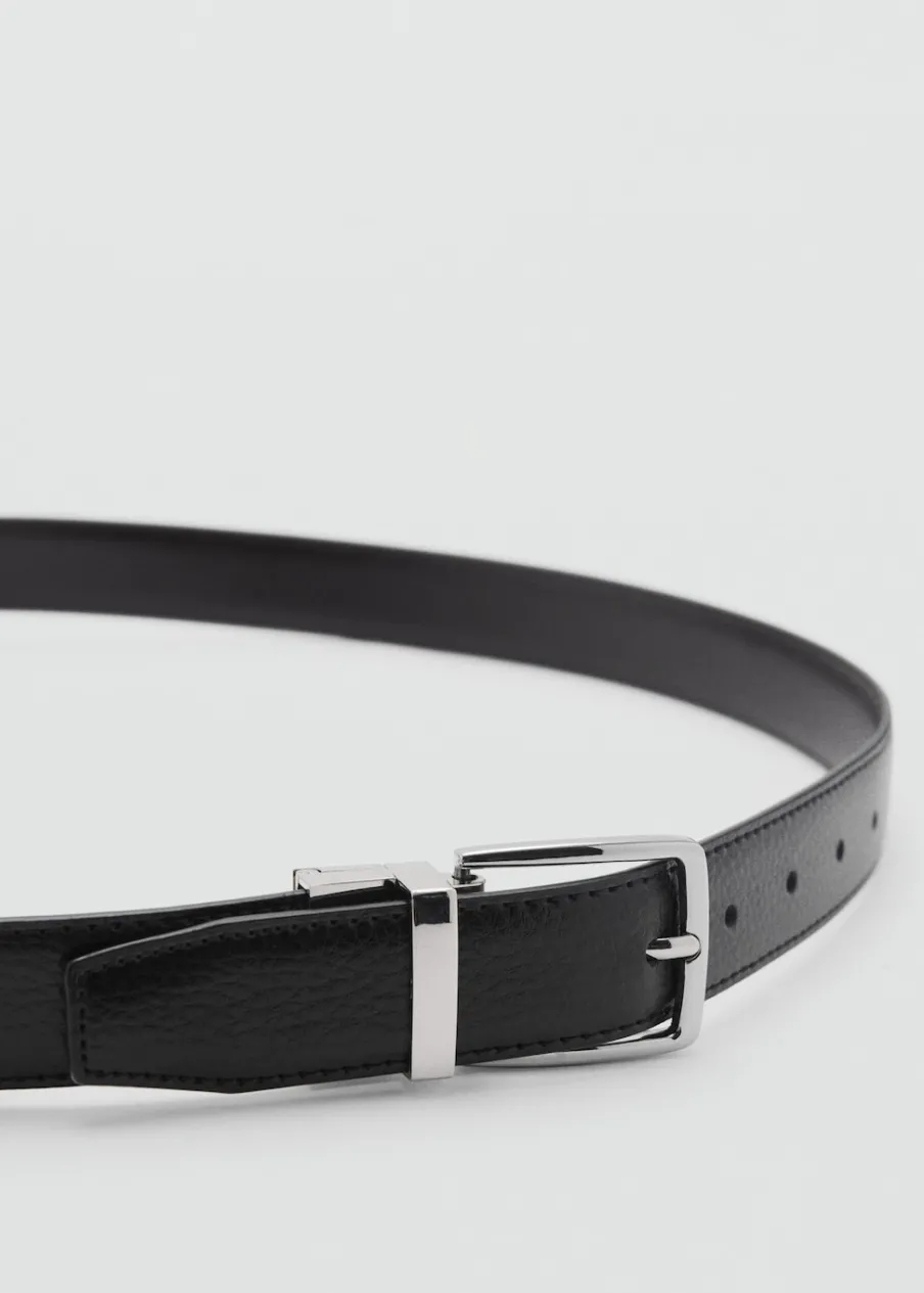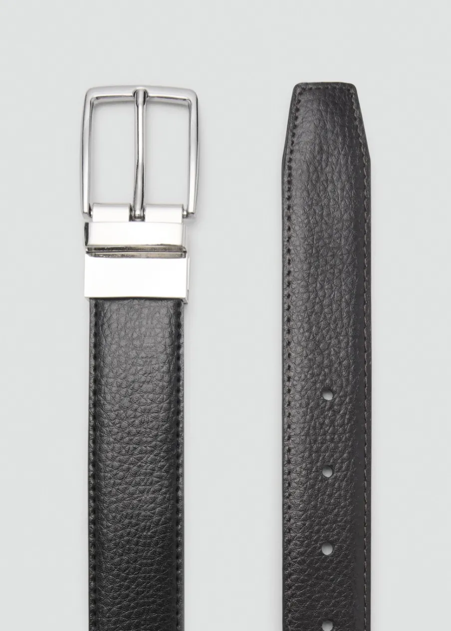 100% skóra bydlęca. Gnieciona skóra. Dwustronna metalowa klamra. Jedna strona z tłoczoną teksturą, druga gładka. Dorabianie dziurek w celu dopasowania rozmiaru gratis w sklepach MANGO.