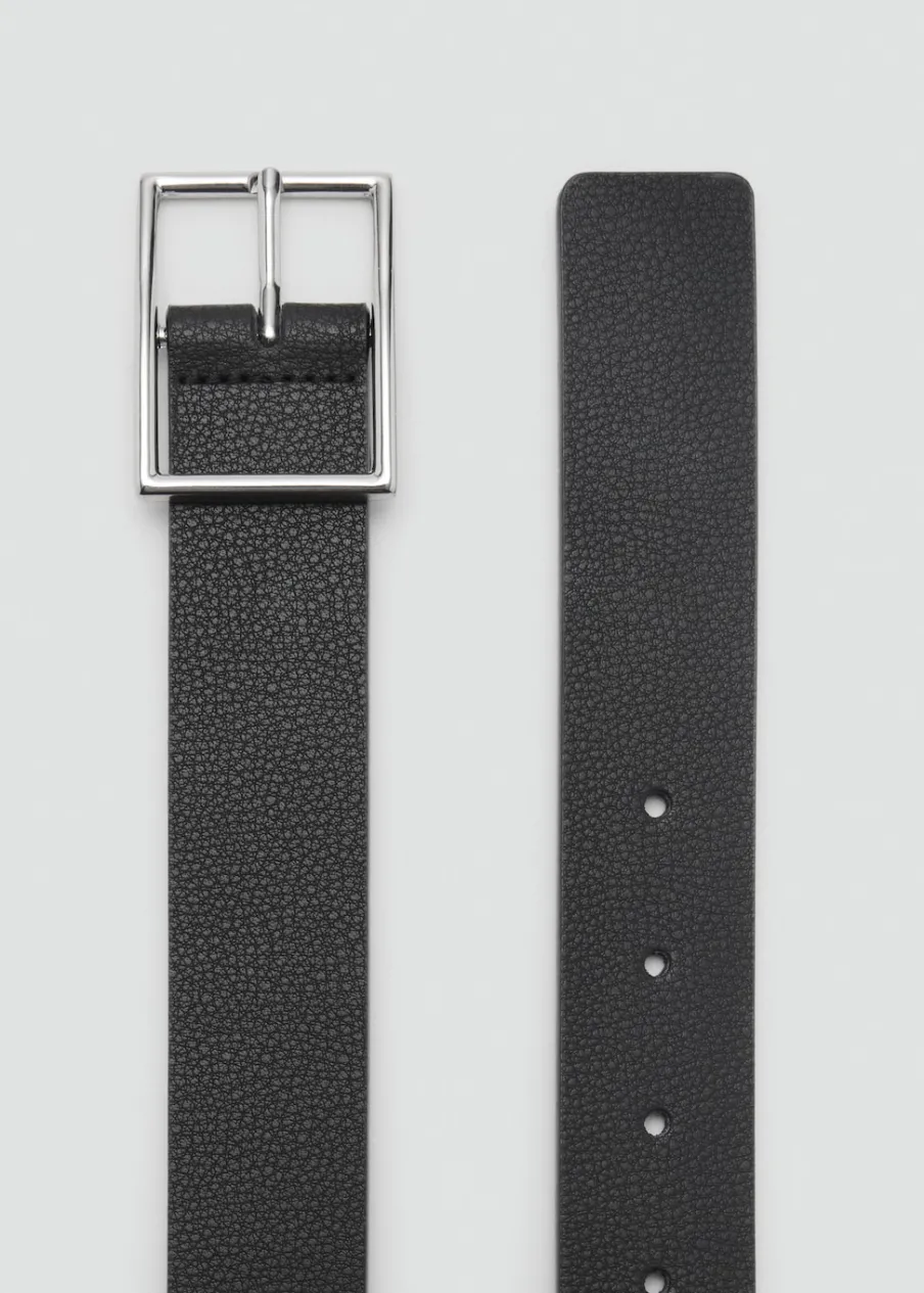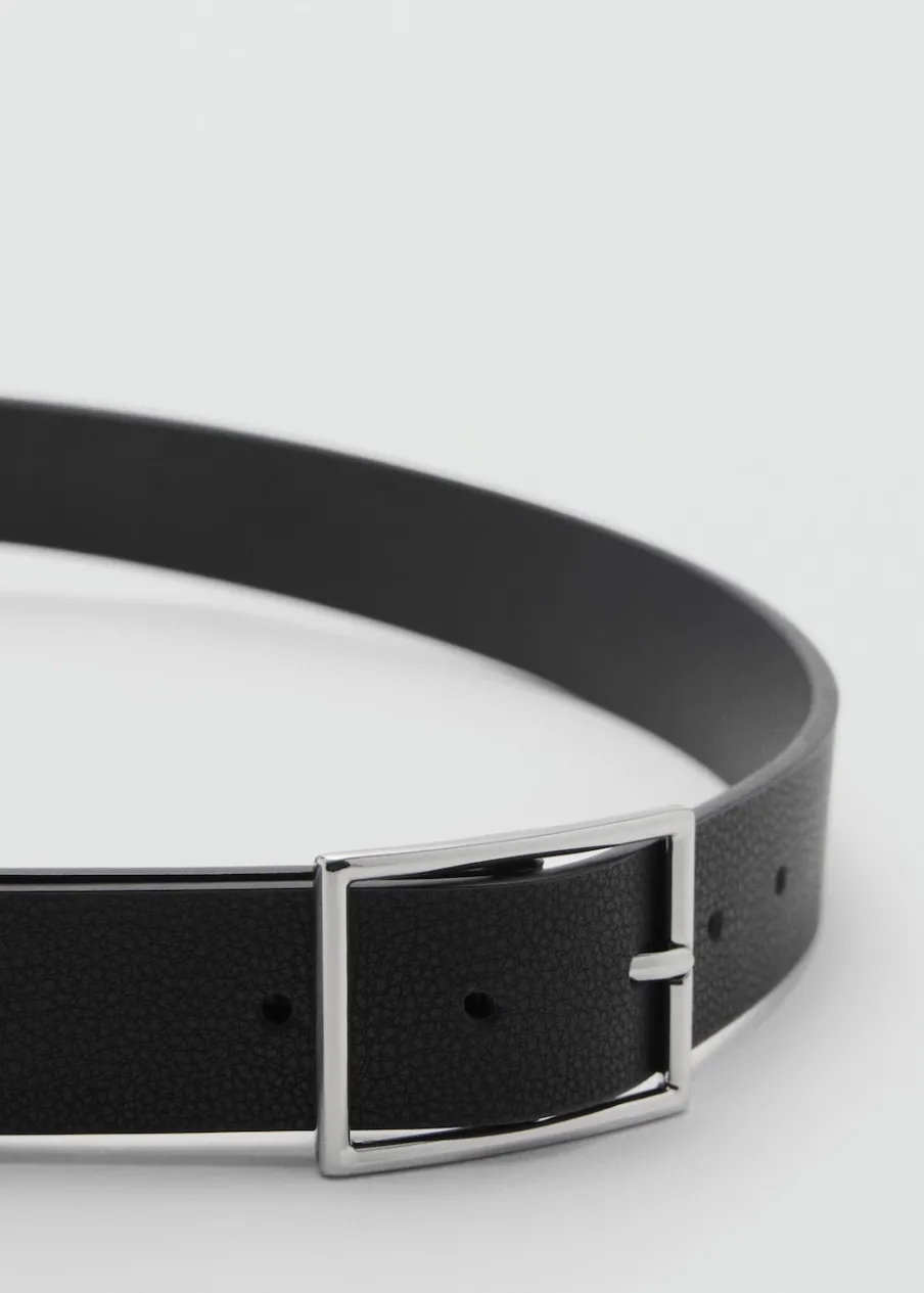 100% skóra bydlęca. Gnieciona skóra. Zapięcie na kwadratową, metalową klamrę. Dorabianie dziurek w celu dopasowania rozmiaru gratis w sklepach MANGO.