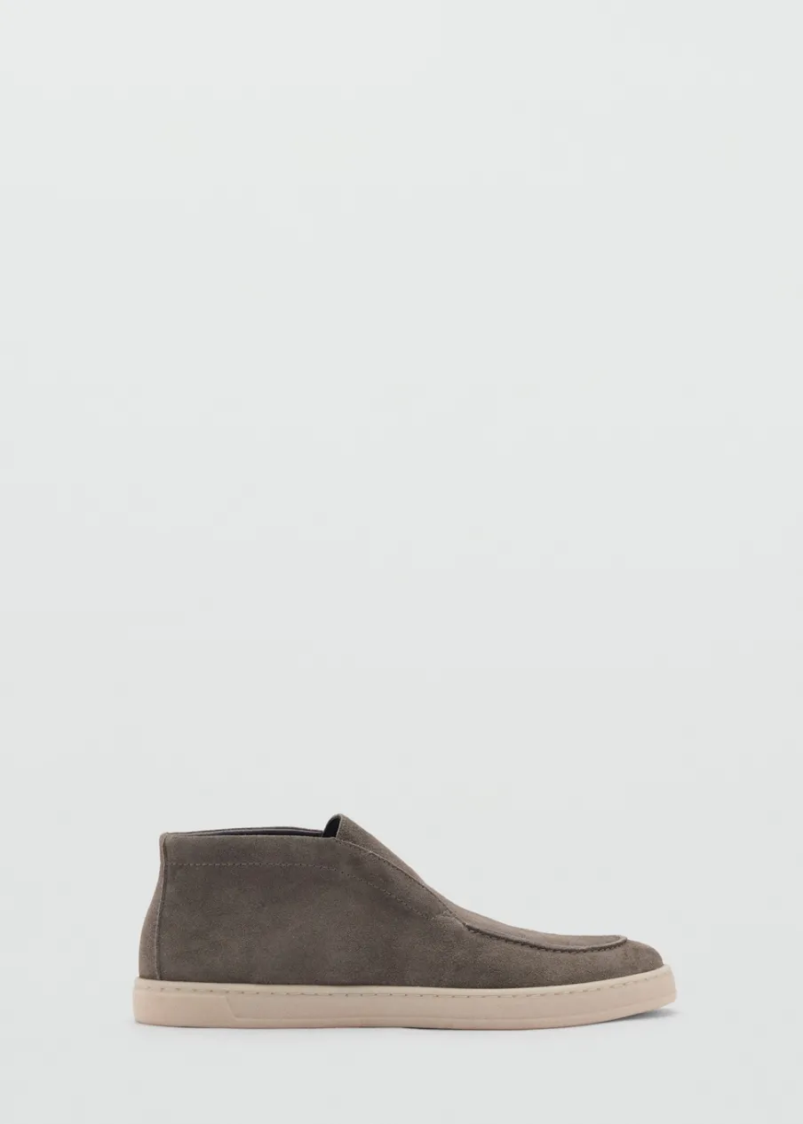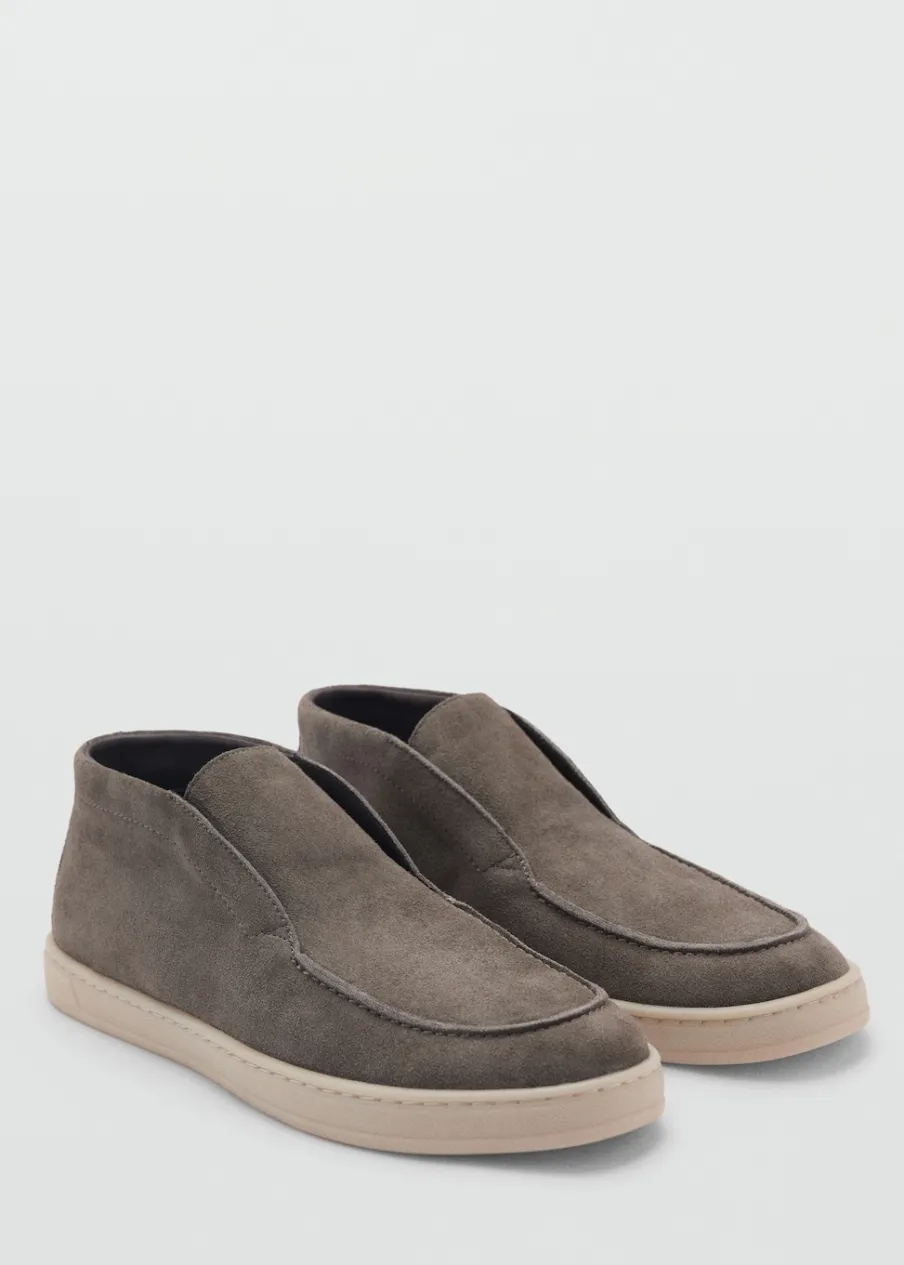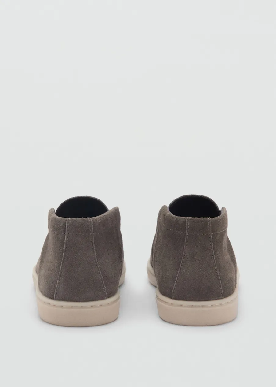 Opis100% skóra zamszowa. Gumowa podeszwa. Stębnowane detale. Zaokrąglony nosek.