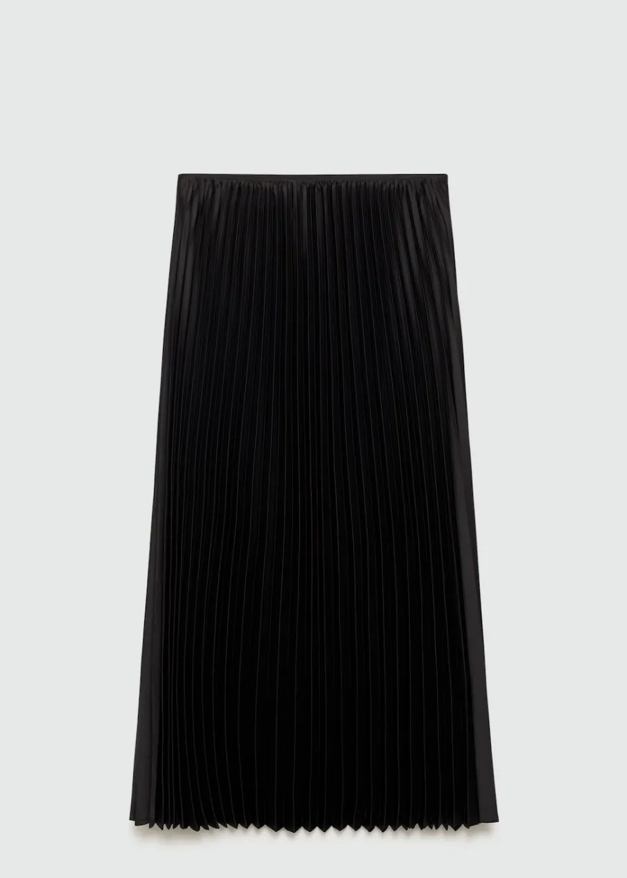 OpisLejąca tkanina. Podwyższony stan. Model evasé. Model długi. Plisowanie. Elastyczny pas. Wewnętrzna podszewka. M…