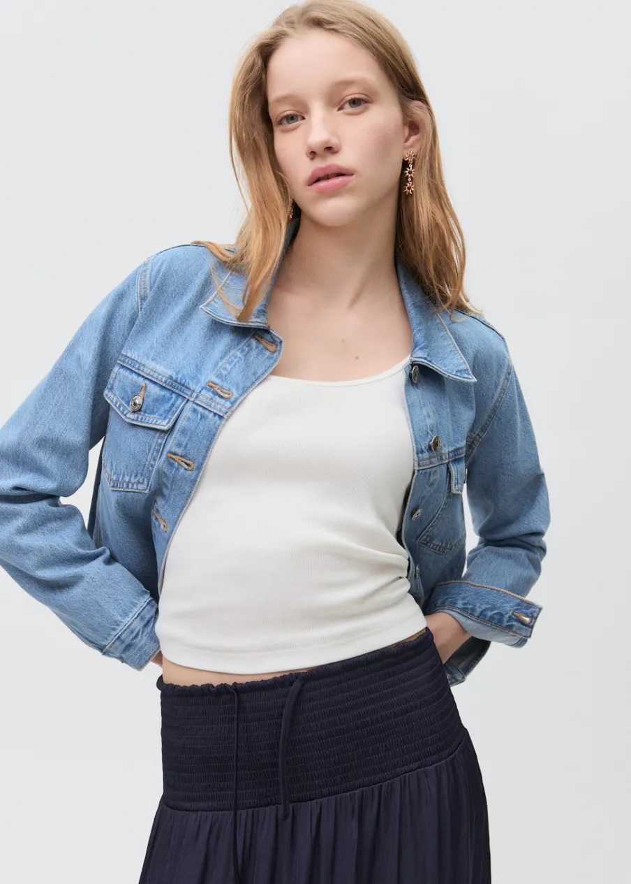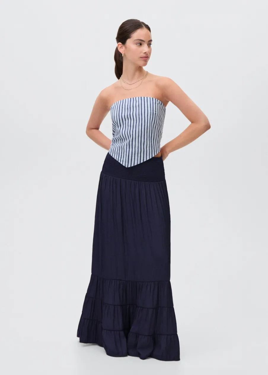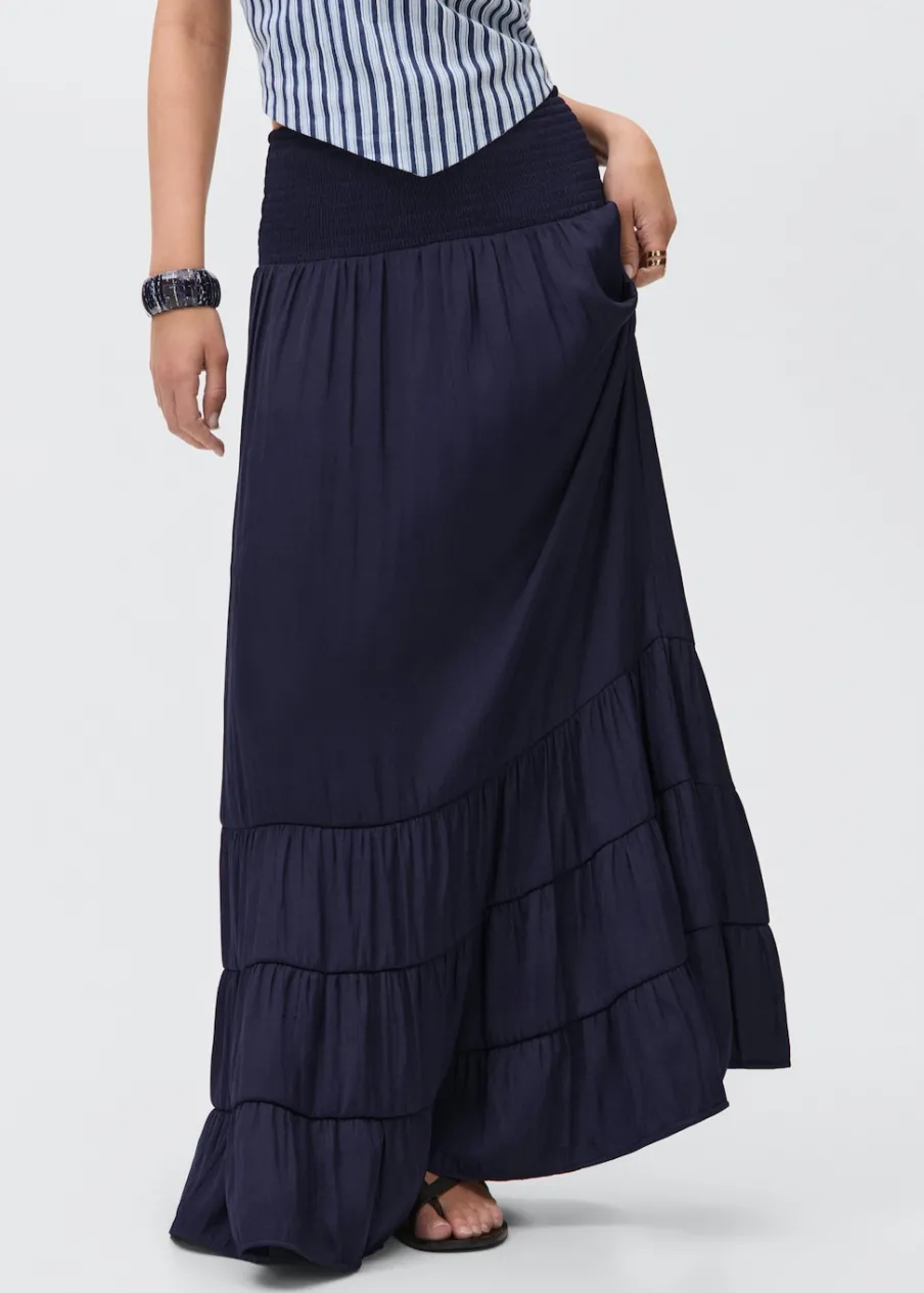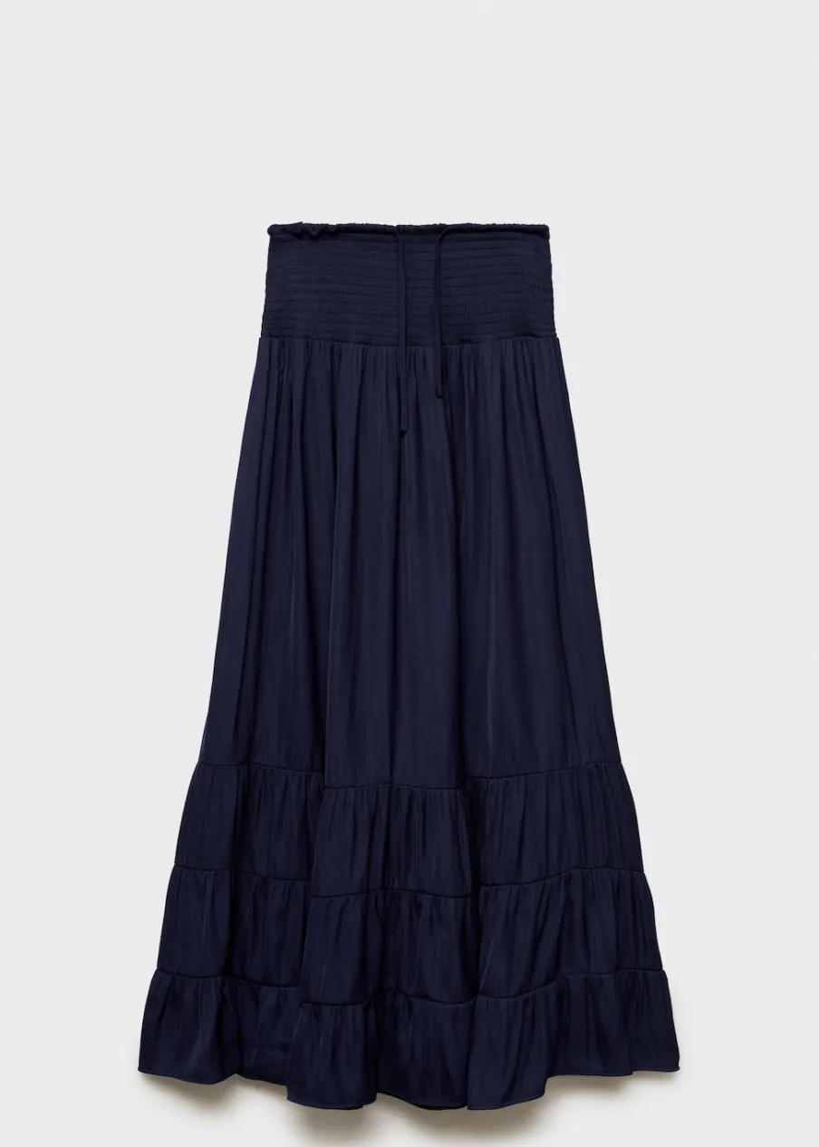 Model długi. Elastyczny pas. Ozdobne marszczenie.