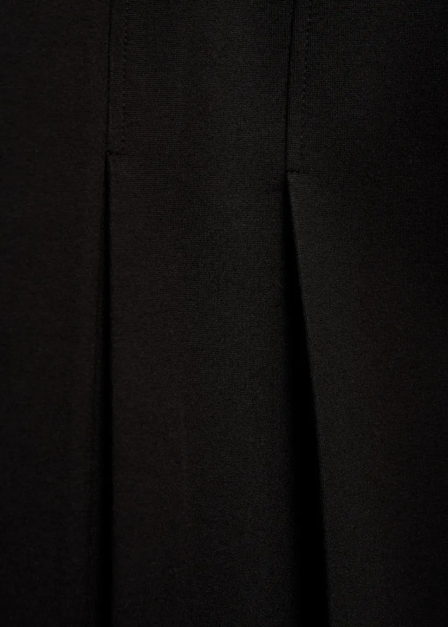 OpisLejąca tkanina. Cienka tkanina. Model evasé. Fason z zakładkami. Rozmiar mini. Podwyższony stan. Kryte zapięcie…