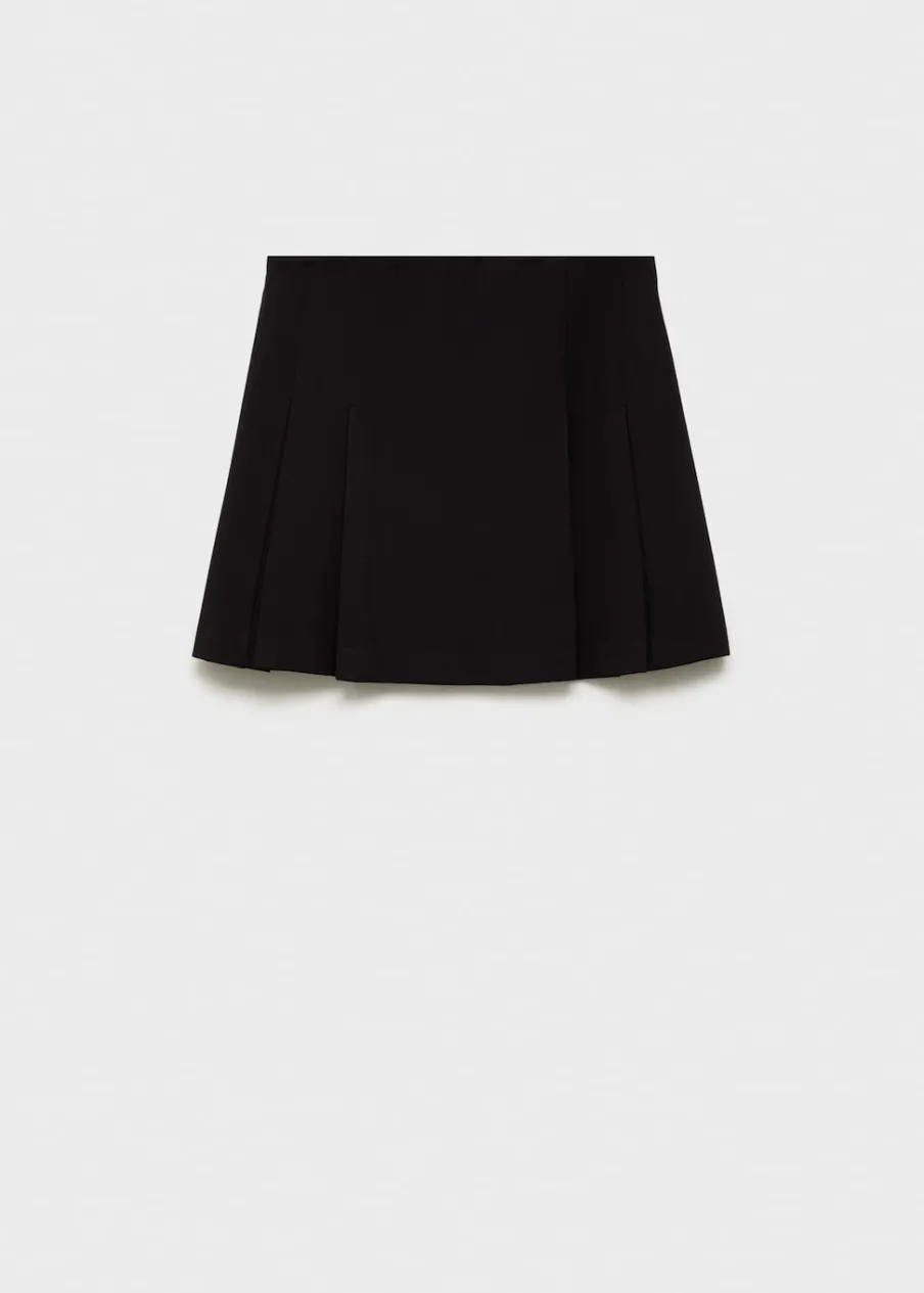 Lejąca tkanina. Cienka tkanina. Model evasé. Fason z zakładkami. Rozmiar mini. Podwyższony stan. Kryte zapięcie na zamek z boku. Bez podszewki.