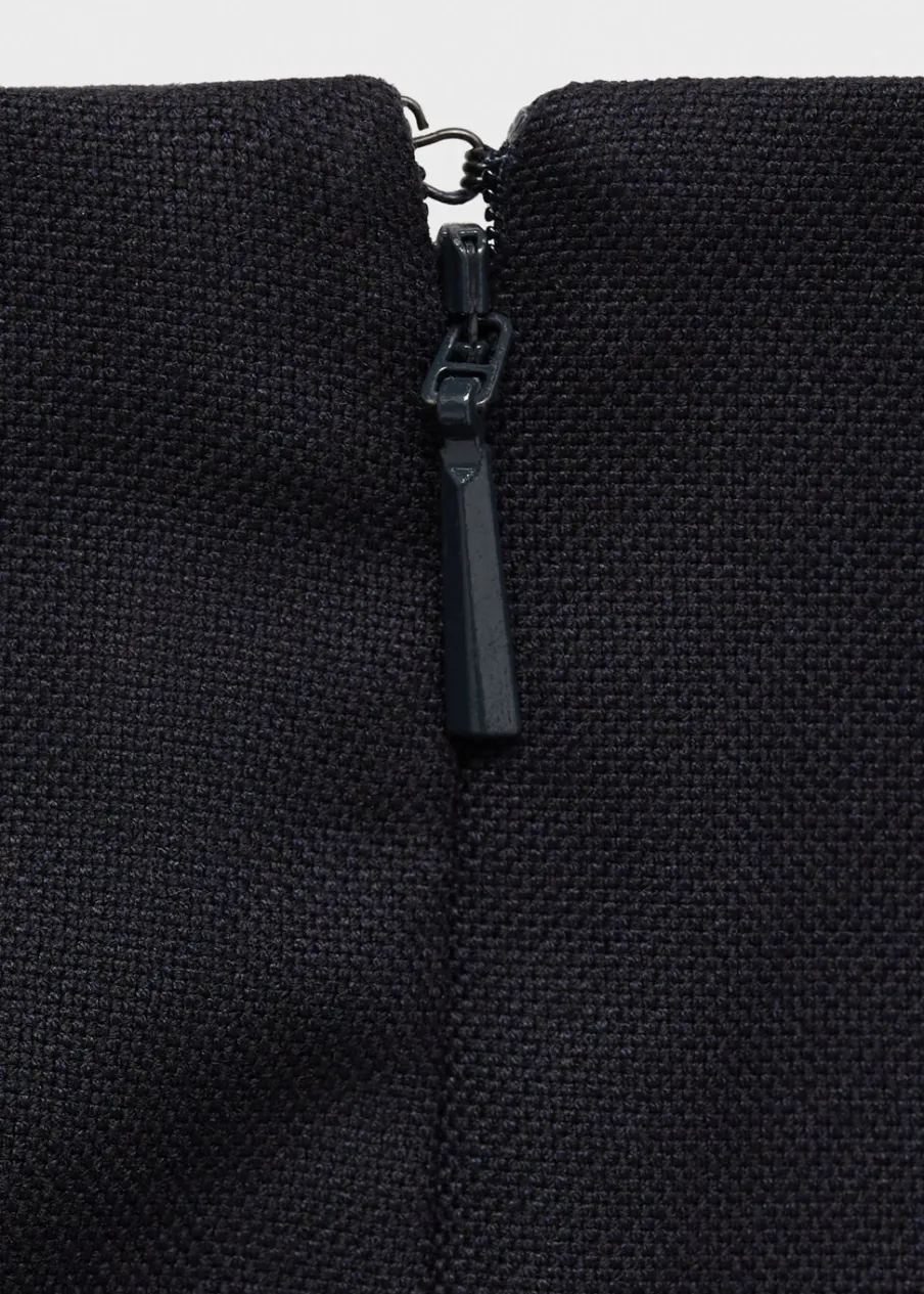 OpisLejąca tkanina. Model długi. Model evasé. Dwie kieszenie boczne. Zapięcie na suwak i haftkę. Detal z zakładkam…