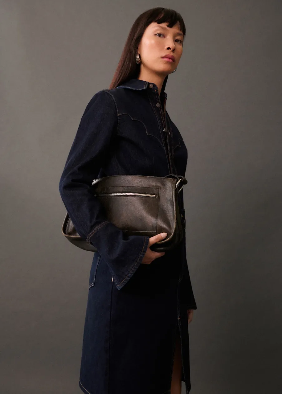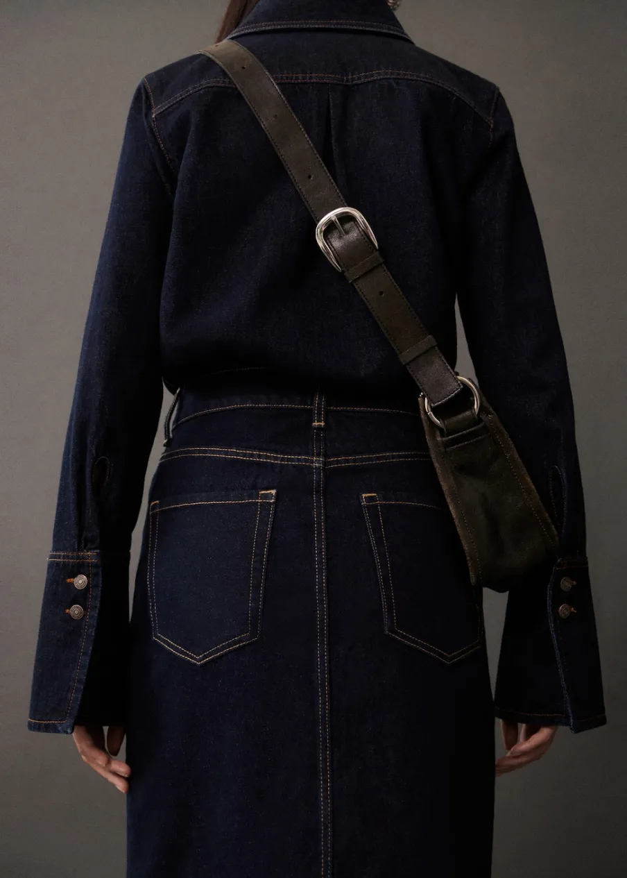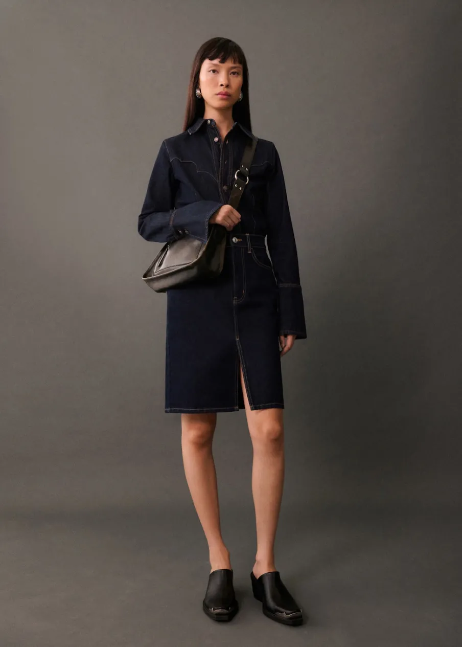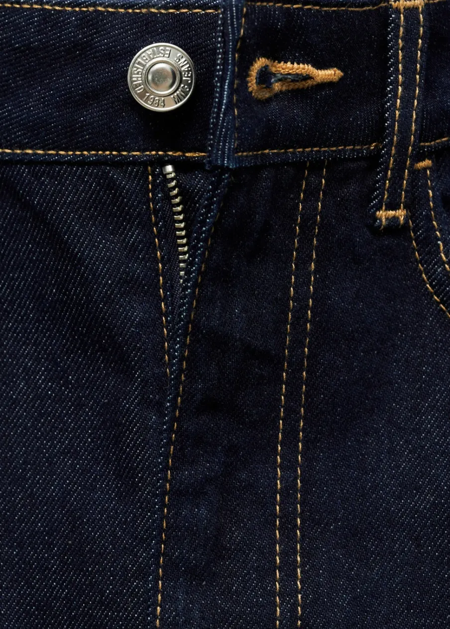 Tkanina bawełniana w dżinsowym stylu. Krótki krój. Rinse wash. Pięć kieszeni. Szlufki. Rozcięcie z przodu u dołu. Modelka ma 177 cm wzrostu i nosi rozmiar S/36. Zapięcie na zamek i guzik z przodu. Model wcięty.