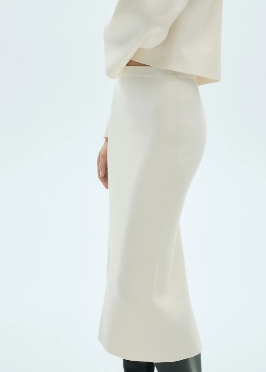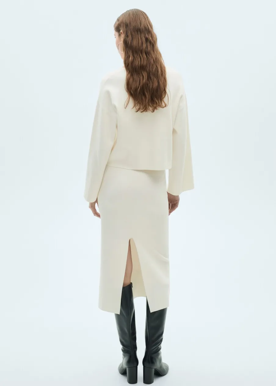Położenie zapięcia: bez zapięcia. Tkanina z cienkiej dzianiny. Krój do kolan. Model prosty. Średni stan. Rozcięcie z tyłu u dołu. Bez zapięcia.