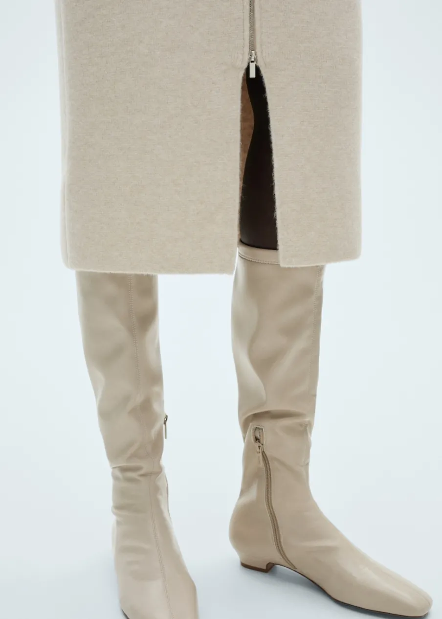Dzianina. Model prosty. Krój do kolan. Średni stan. Zapięcie z przodu na suwak. Rozcięcie u dołu. Total look.