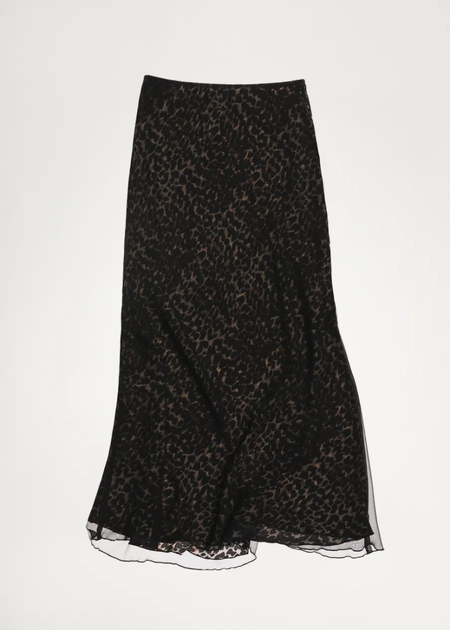 Cienka tkanina. Slim-fit. Model długi. Wzór w lamparcie cętki. Zwierzęcy wzór. Średni stan. Elastyczny pas. Bez zapięcia. Tylko podszewka.