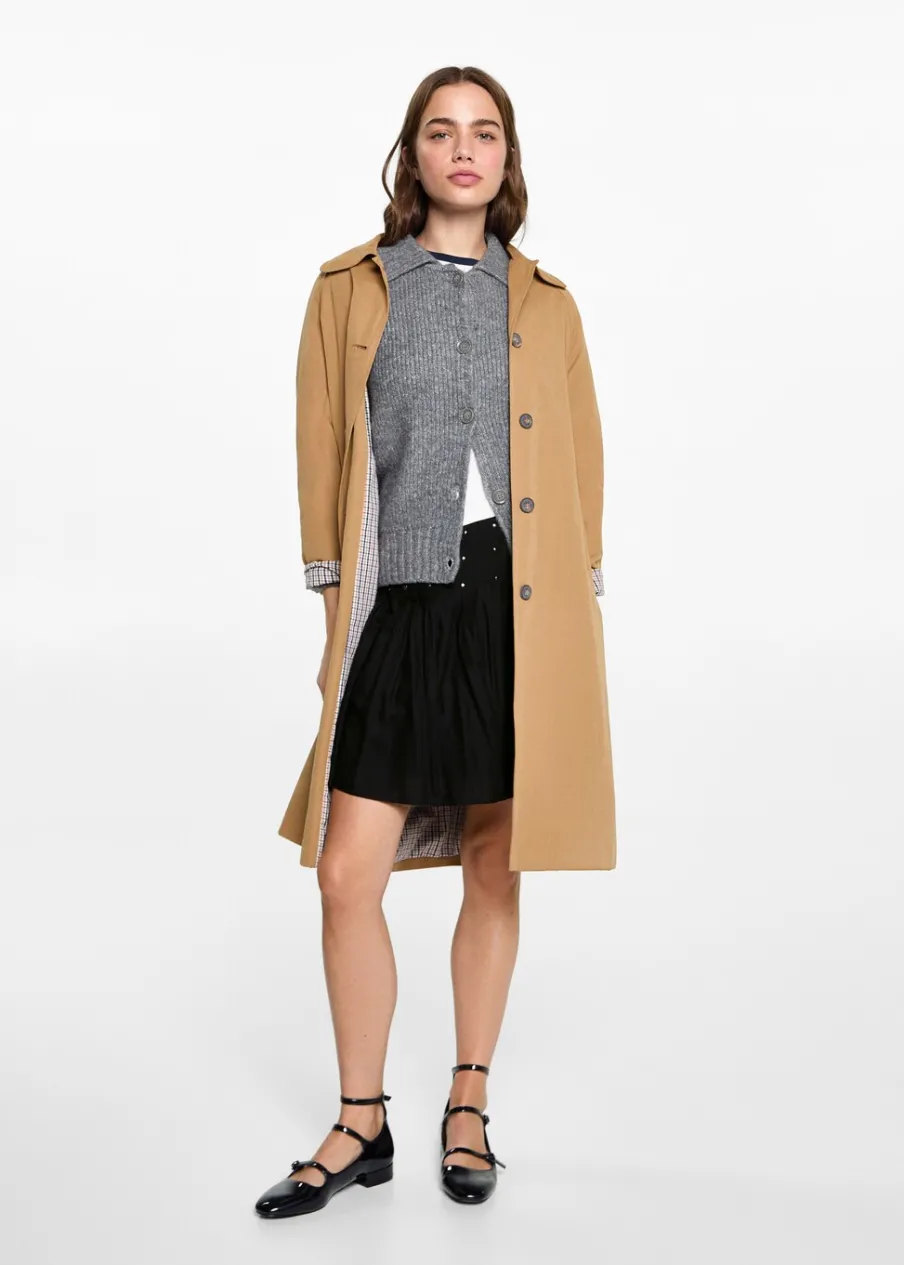 Model prosty. Krótki krój. Ozdobne ćwieki. Zapięcie na zamek z boku. Modelka ma 172 cm wzrostu i nosi rozmiar M.